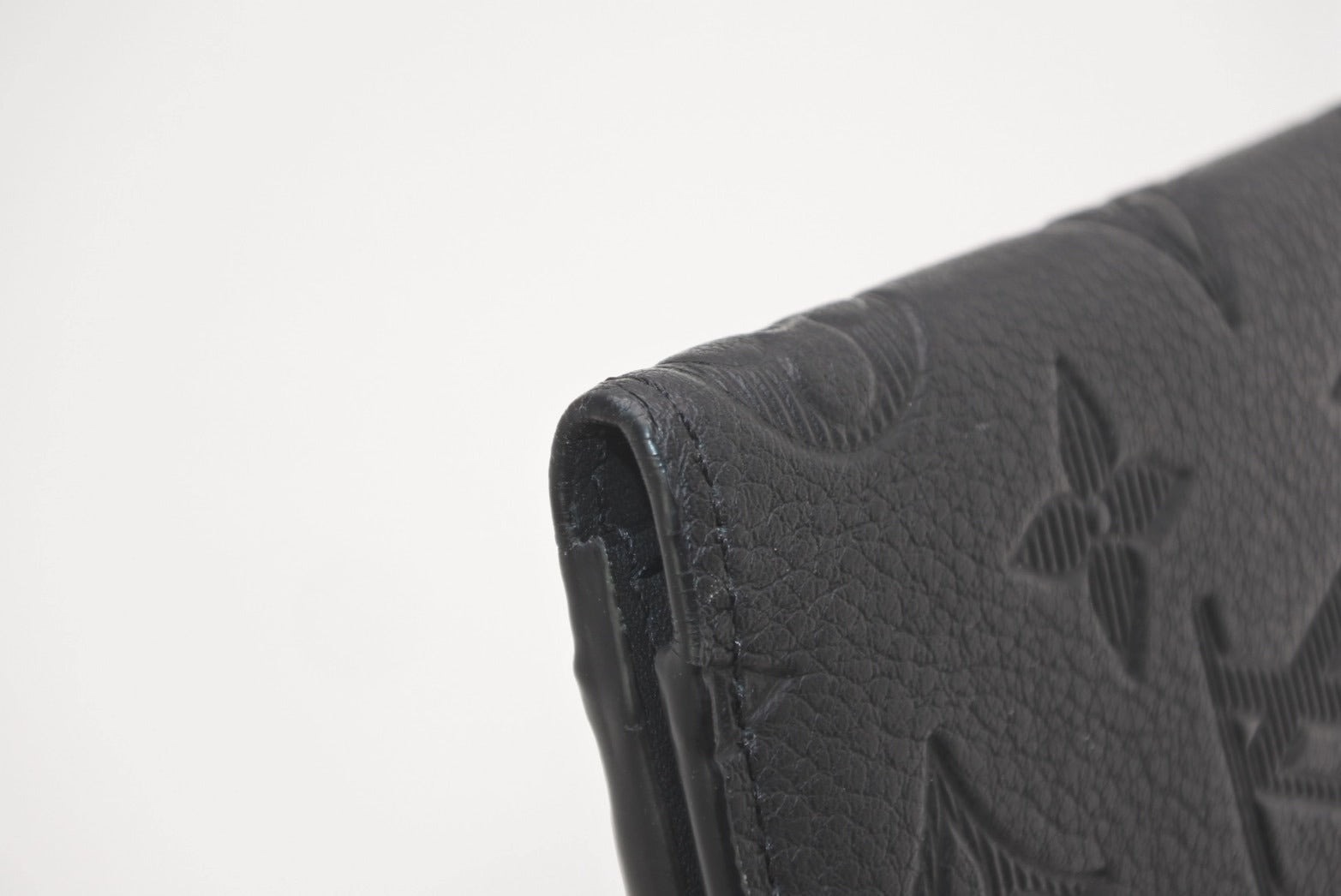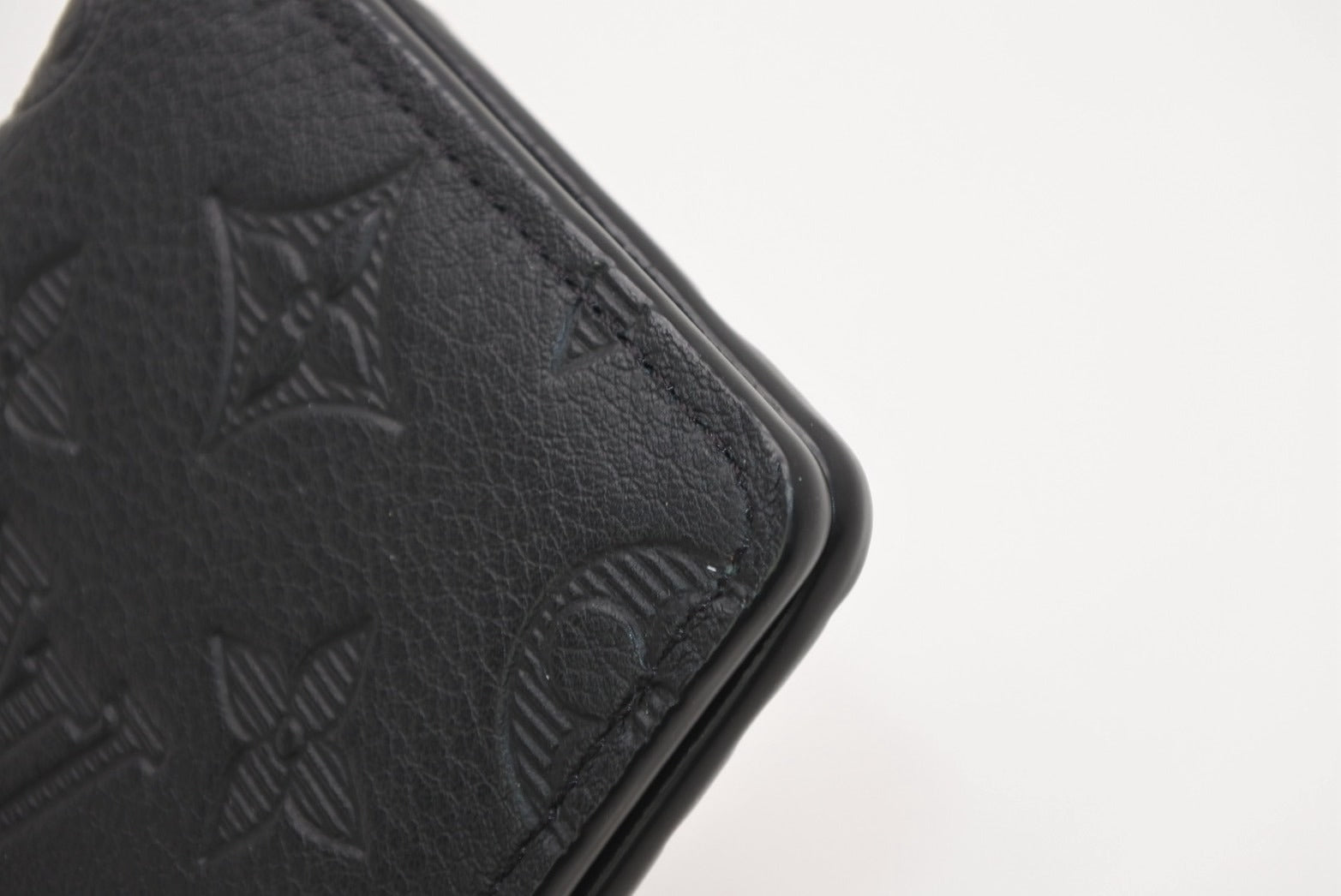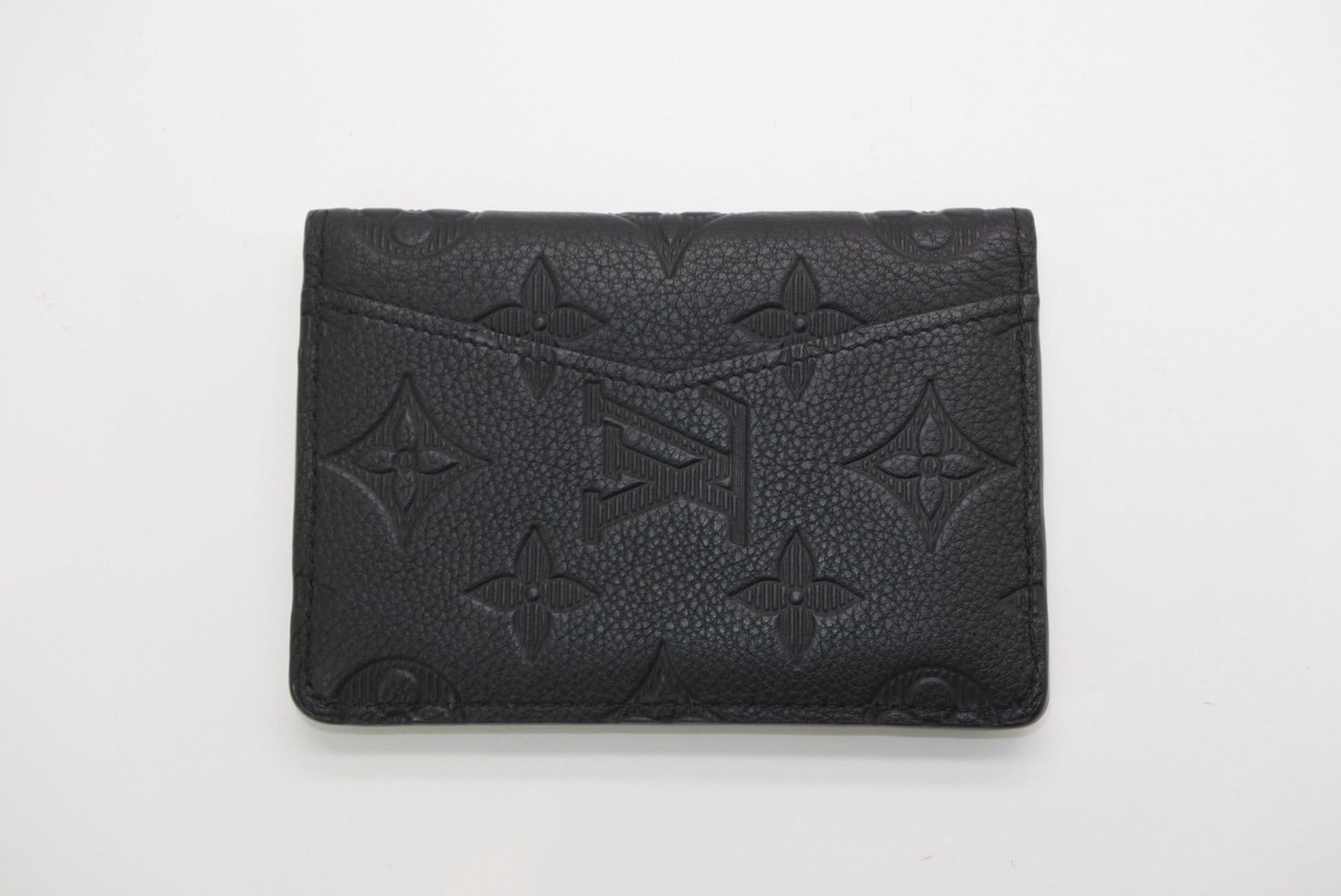 日常の必需品をエレガントに持ち運びできるブラックのモノグラム・シャドウ レザーを使用したカードケースです。