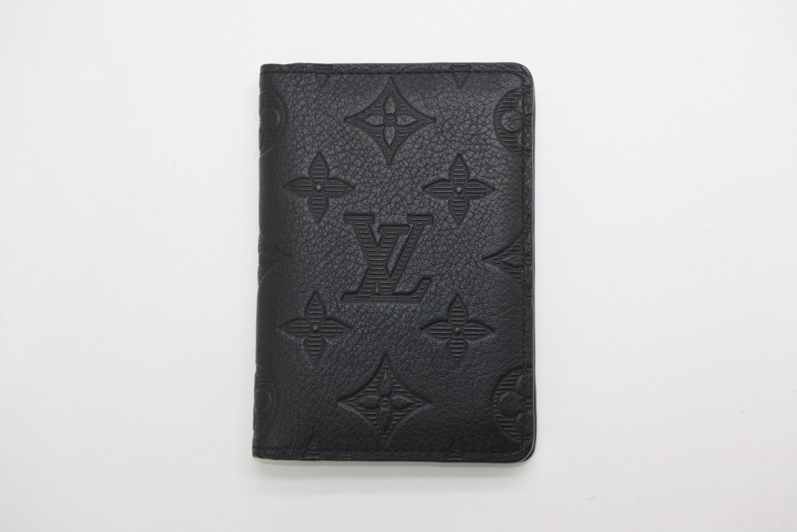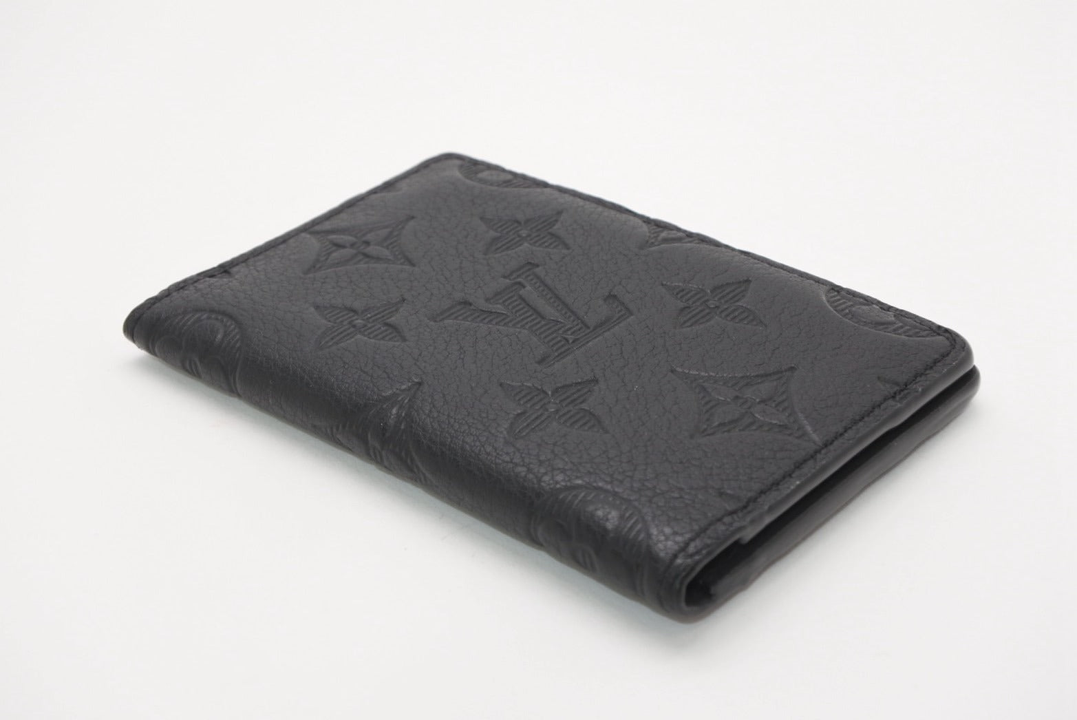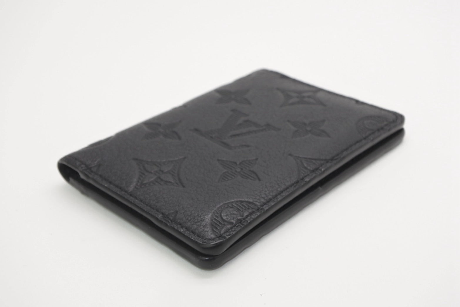日常の必需品をエレガントに持ち運びできるブラックのモノグラム・シャドウ レザーを使用したカードケースです。