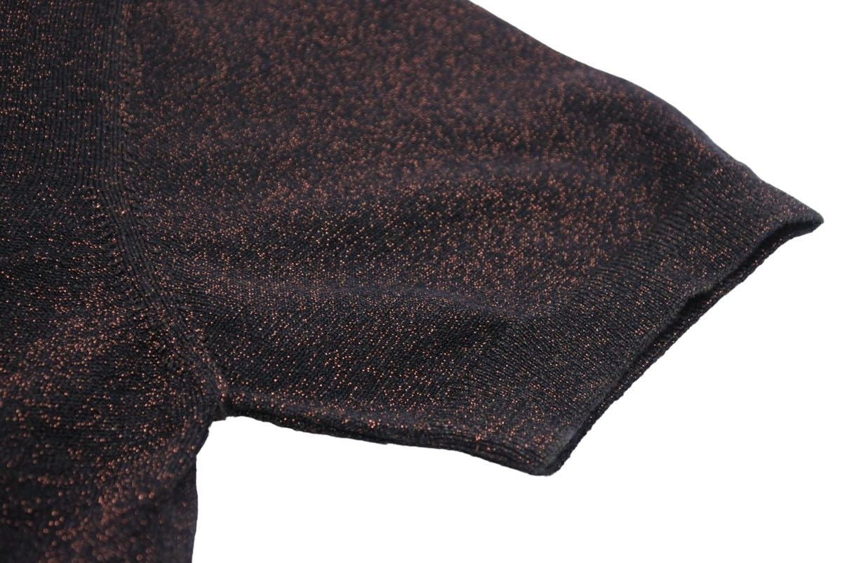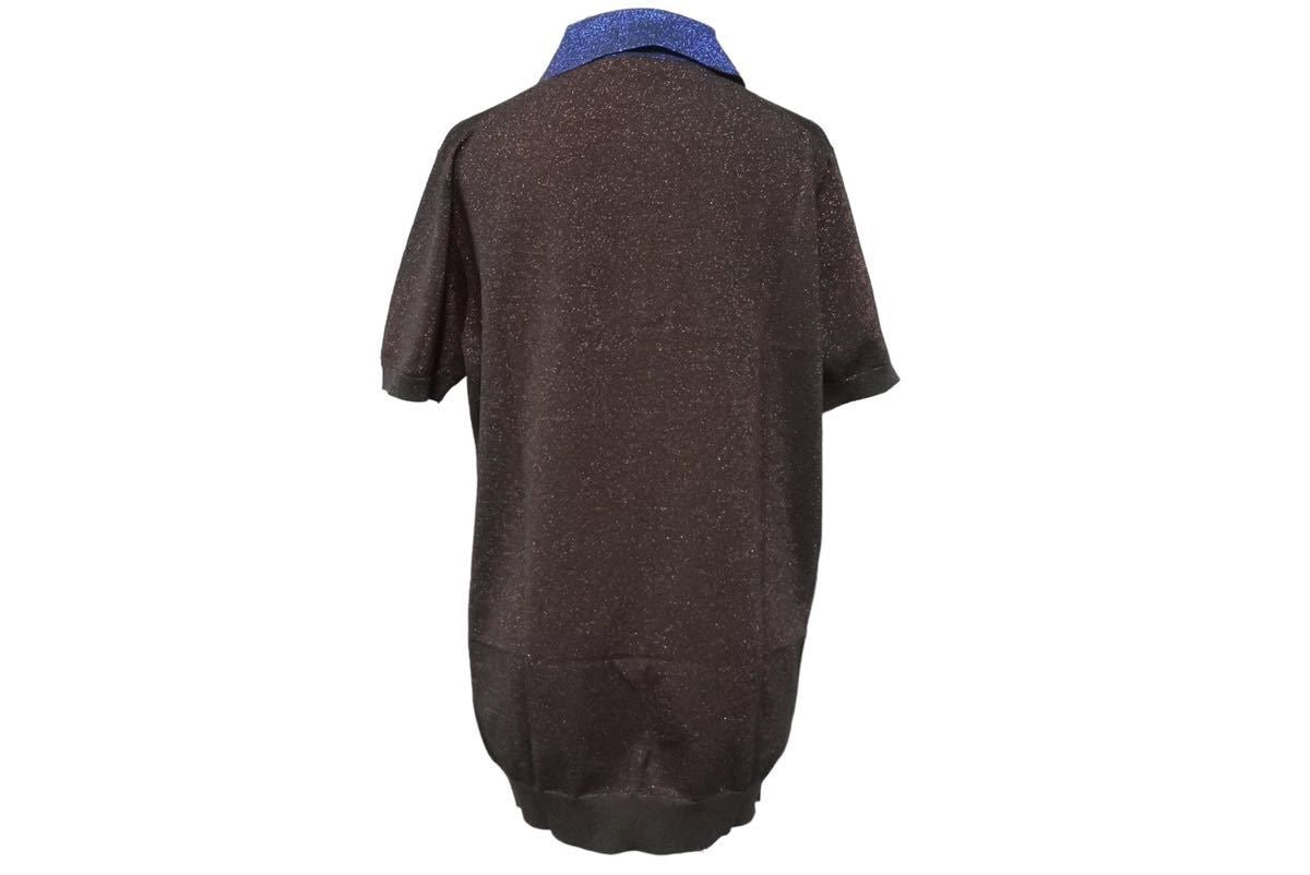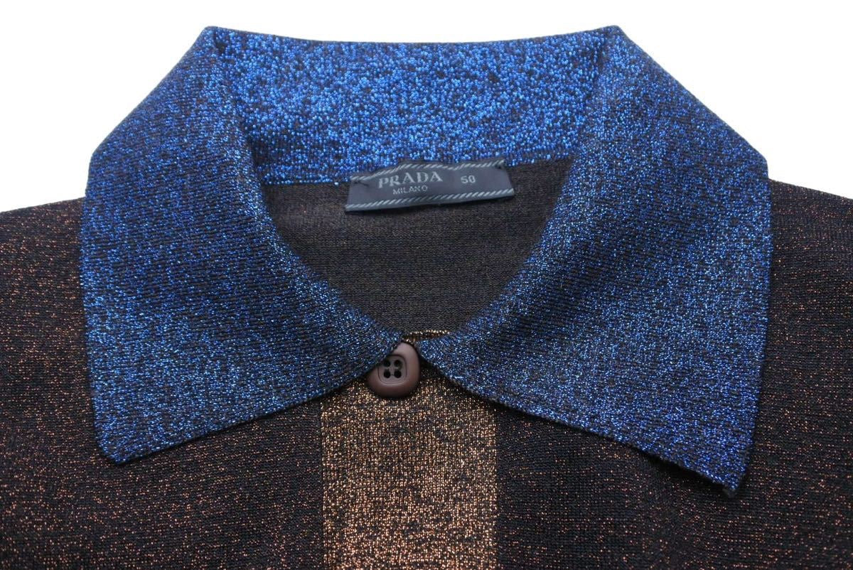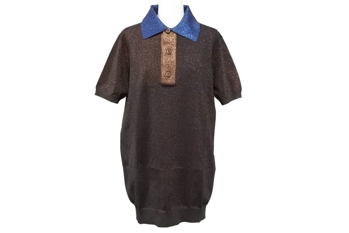 PRADA プラダ ポロシャツ トップス 半袖 ラメ シルク ビスコース ポリアミド ブラウン ブルー サイズ50 美品 中古 42949