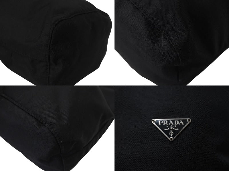 極美品 PRADA プラダ ポーチ 巾着 バッグ ミニ ナイロン シルバー金具 ブラック サイズ23 中古 4b000176