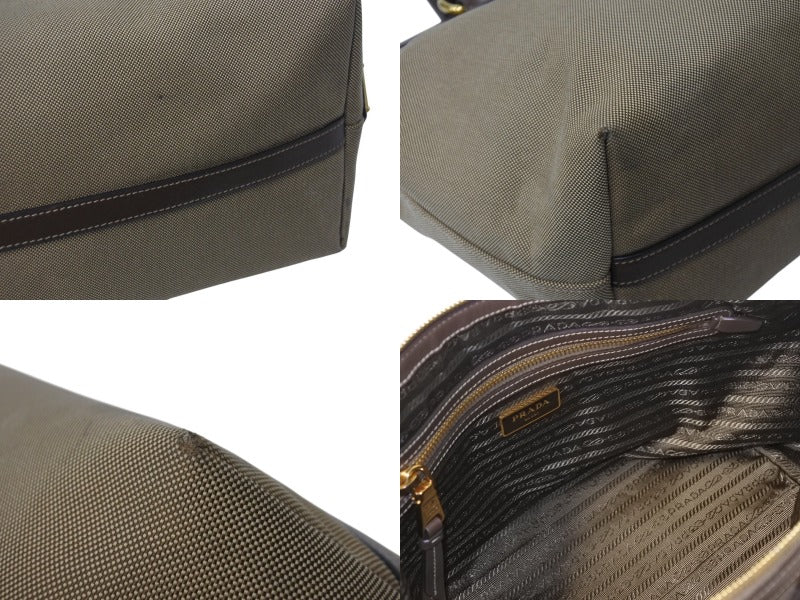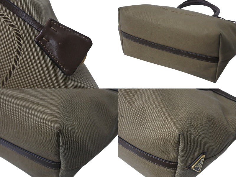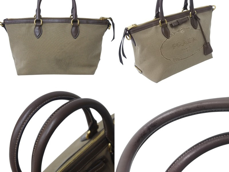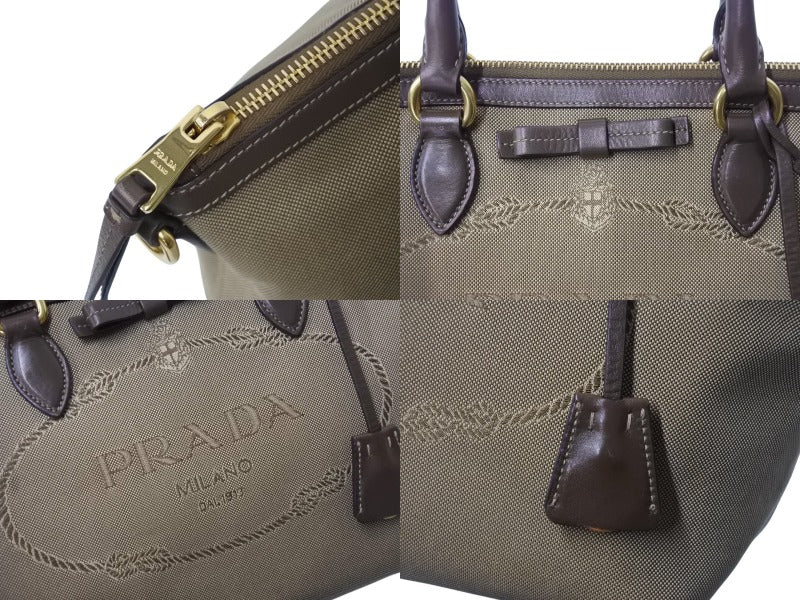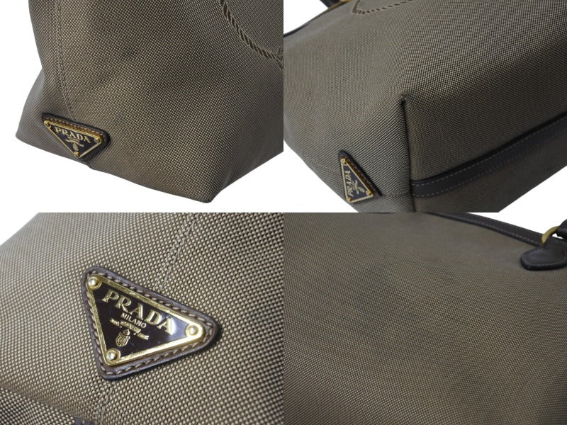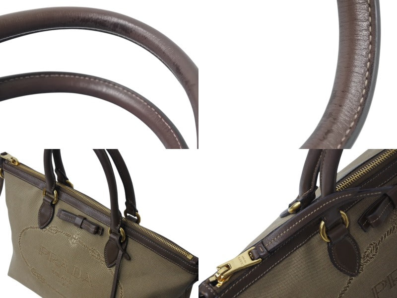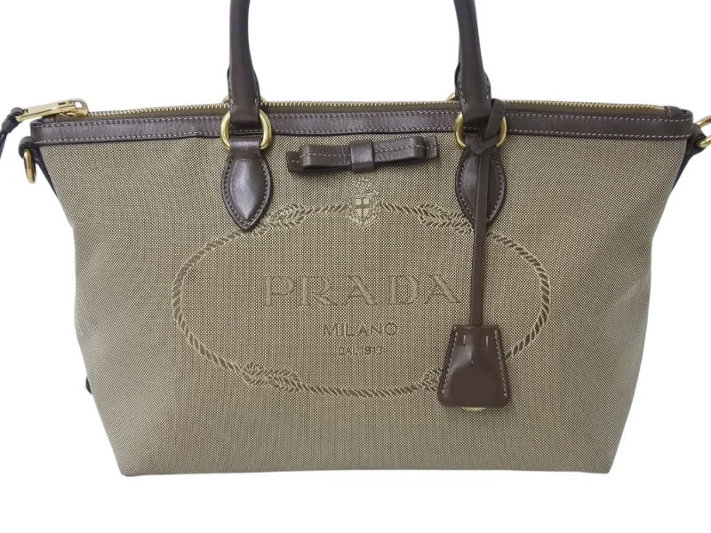 PRADA プラダ ロゴジャガード トートバッグ ハンドバッグ 1BA104 トライアングルロゴ カーキベージュ ブラック 美品 中古 4b002984