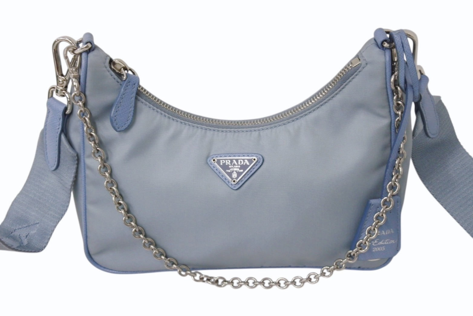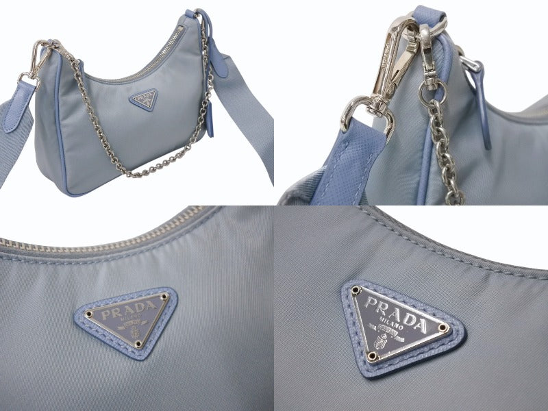 PRADA プラダ Re-Edition 2005 ショルダーバッグ 1BH204 2WAY Re-Nylon リナイロン ライトブルー トライアングルロゴ 美品 中古 4b003753