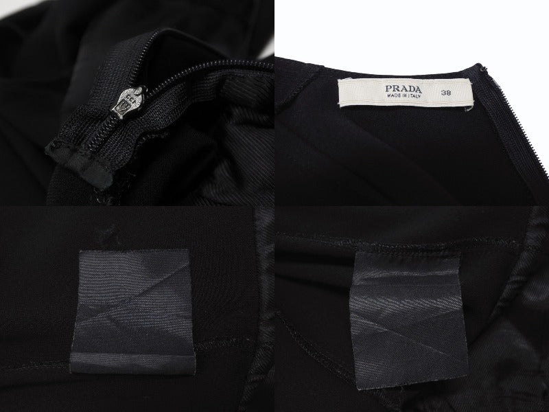 PRADA プラダ ノースリーブ ワンピース ドレス プリーツ ミディ丈 ブラック サイズ38 美品 中古 4b004484