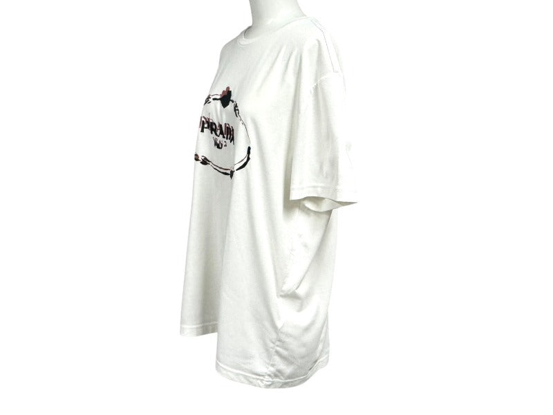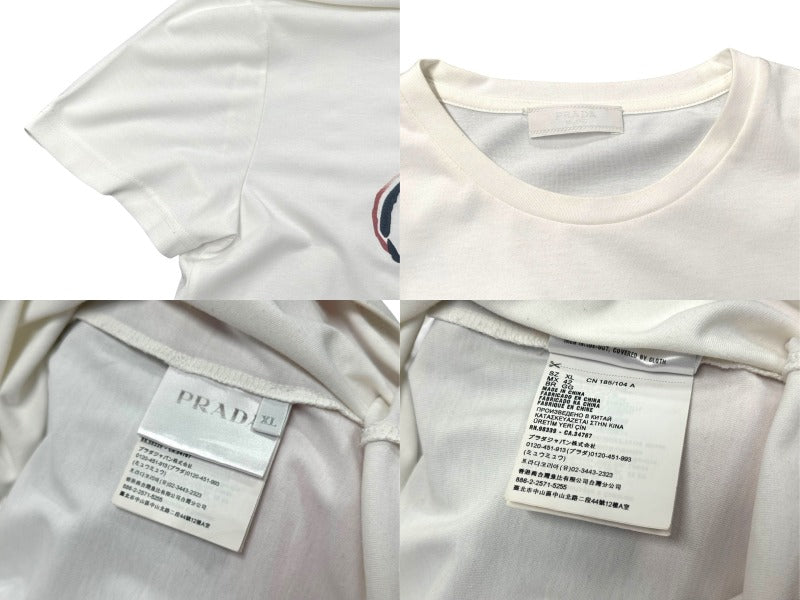 極美品 PRADA プラダ 18AW 半袖Tシャツ UJN555 サイズXL ホワイト プリント コットン ポリエステル 刺繍 中古 4b004524