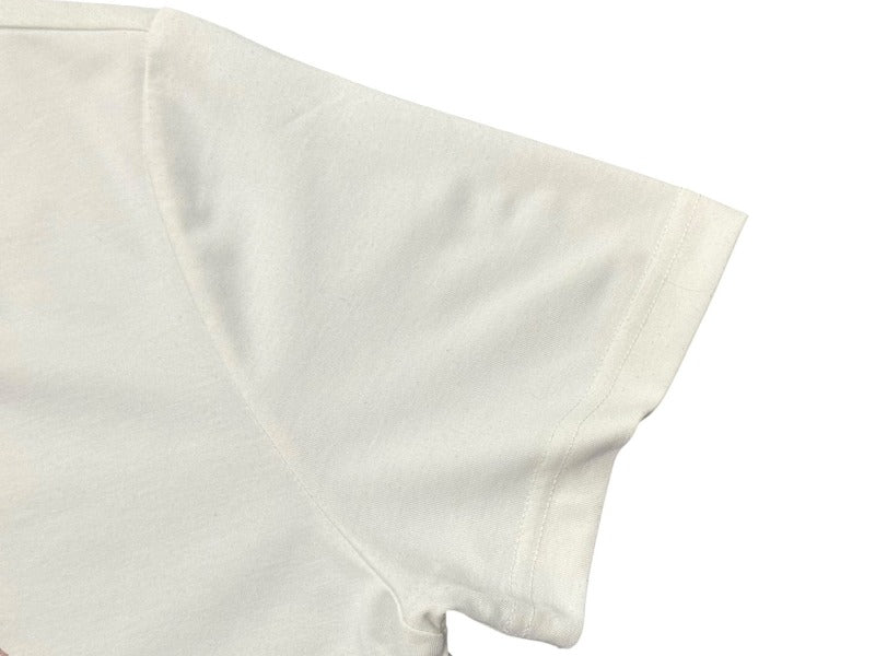 プリントと刺繍で施されたロゴデザインが目を惹くTシャツです。