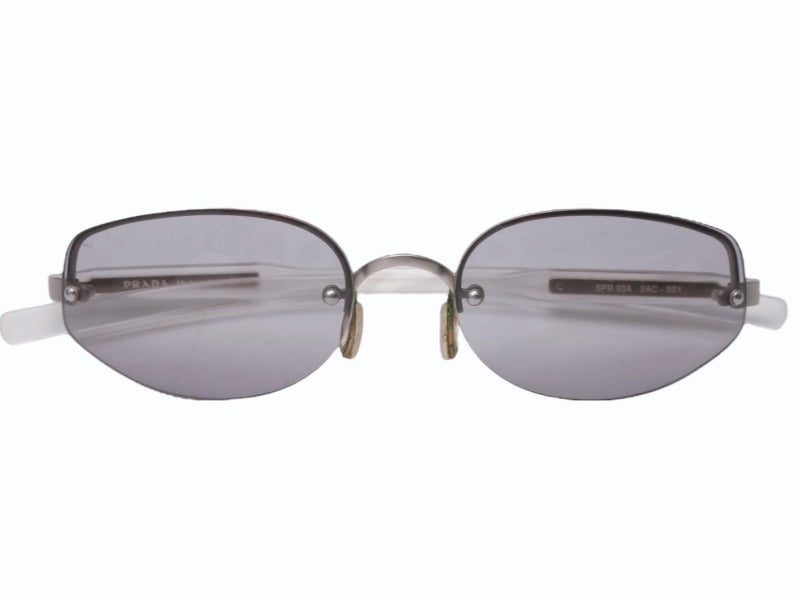 PRADA プラダ サングラス メガネ SPR 93A イタリア製 プラスチック メタル クリア グレー シルバー金具 美品 中古 4b005004