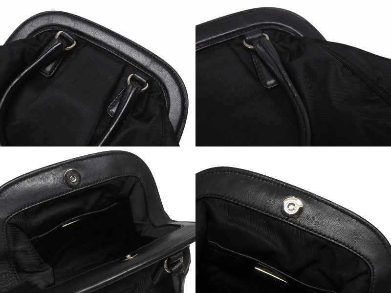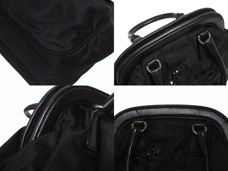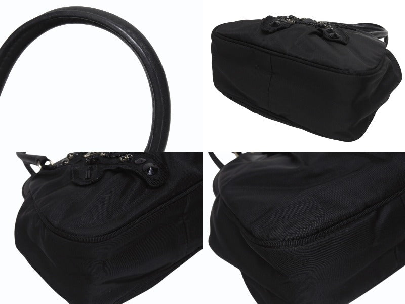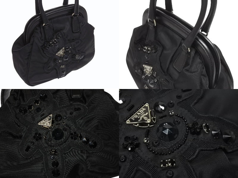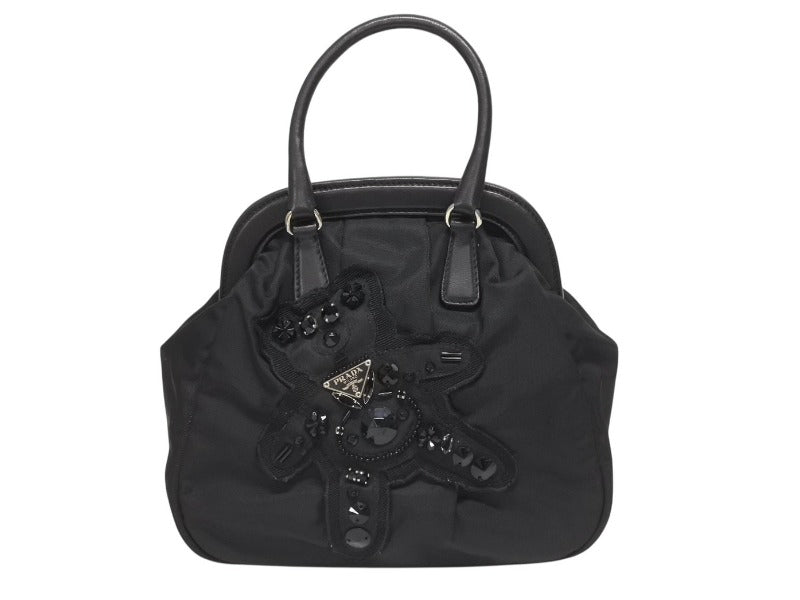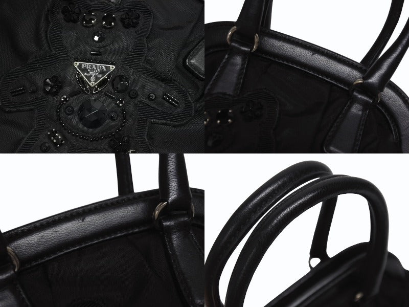 PRADA プラダ BearLogo ベアロゴ ハンドバッグ トライアングルロゴ 2020s ナイロン レザー ビジュー ブラック 美品 中古 4b005303