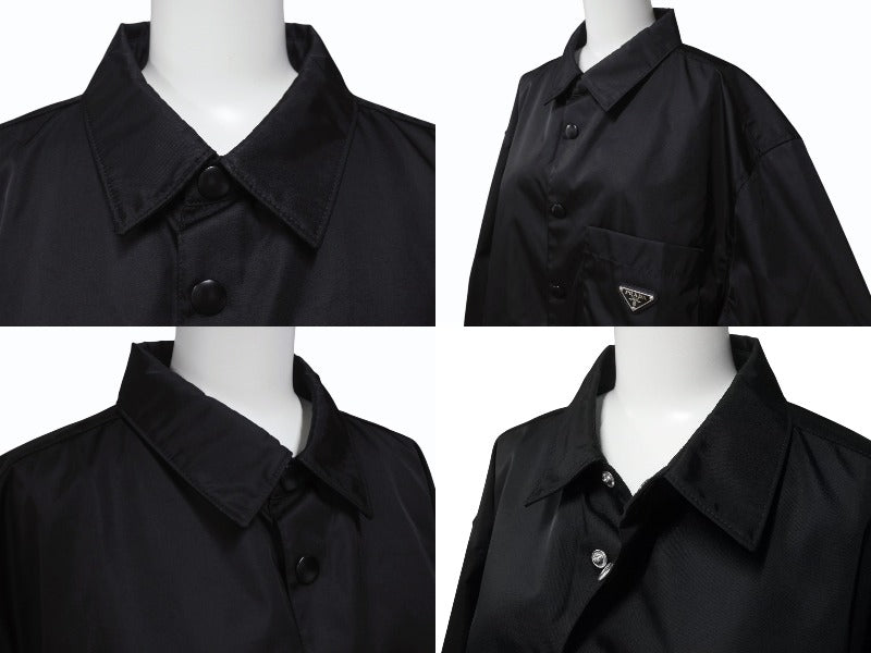 極美品 PRADA プラダ Re-Nylon Shirt リナイロン 長袖シャツ SC514 サイズXXL トライアングルロゴ 三角ロゴプレート ブラック 中古 4b006249