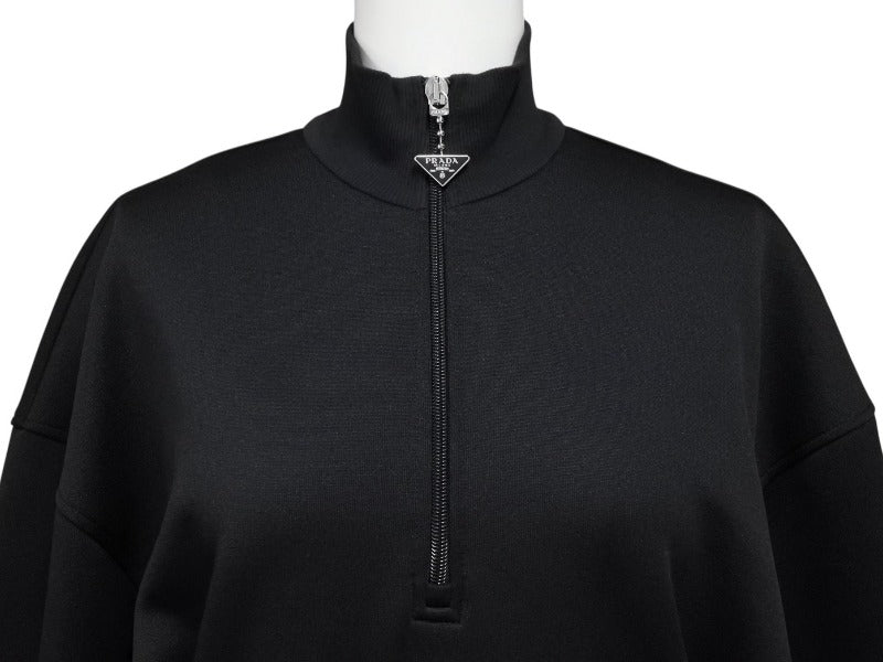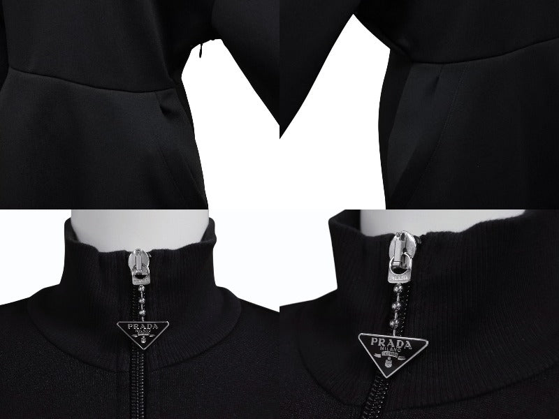 極美品 PRADA プラダ スウェット ワンピース ドレス 2023 WS15420 トライアングルロゴ ブラック シルバー金具 中古 4b007621