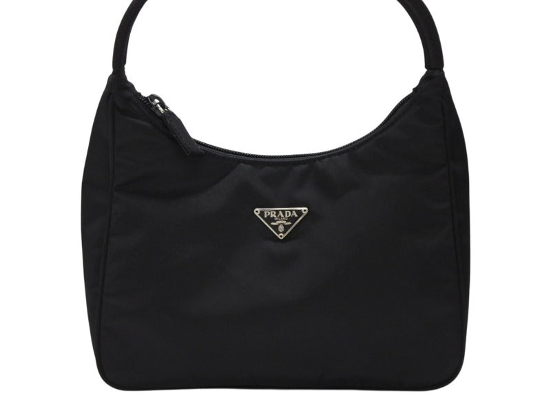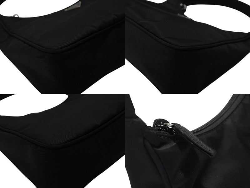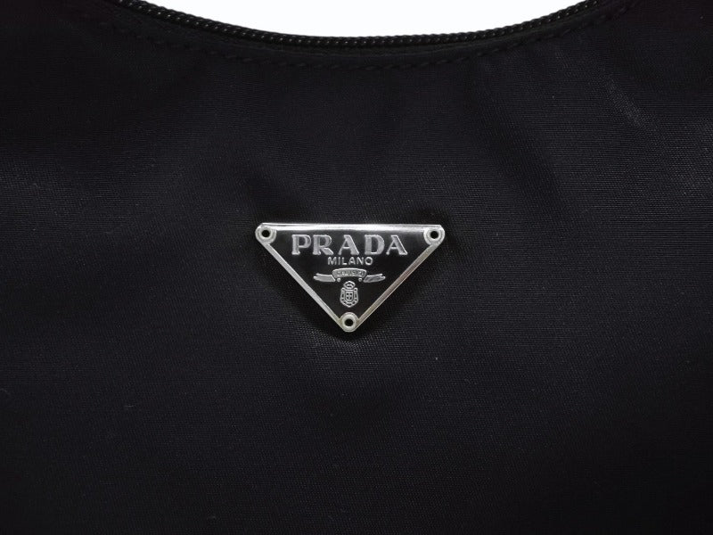 極美品 PRADA プラダ ホーボー ハンドバッグ ワンショルダーバッグ 三角ロゴプレート MV519 ブラック ナイロン 中古 4b007728