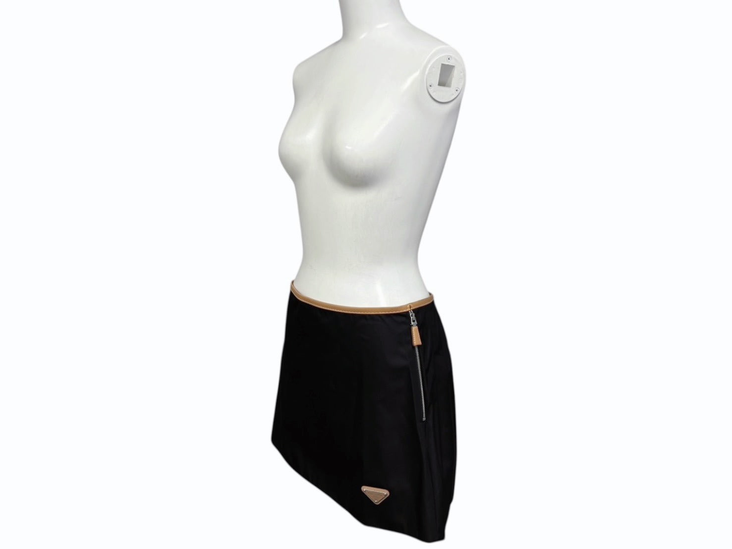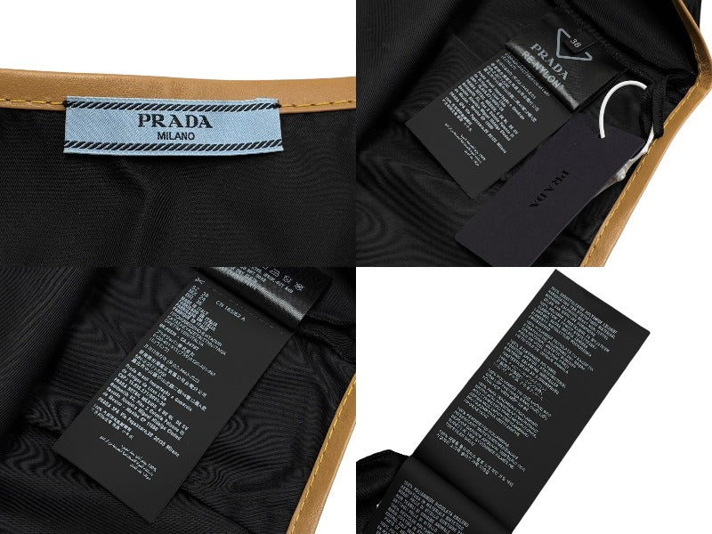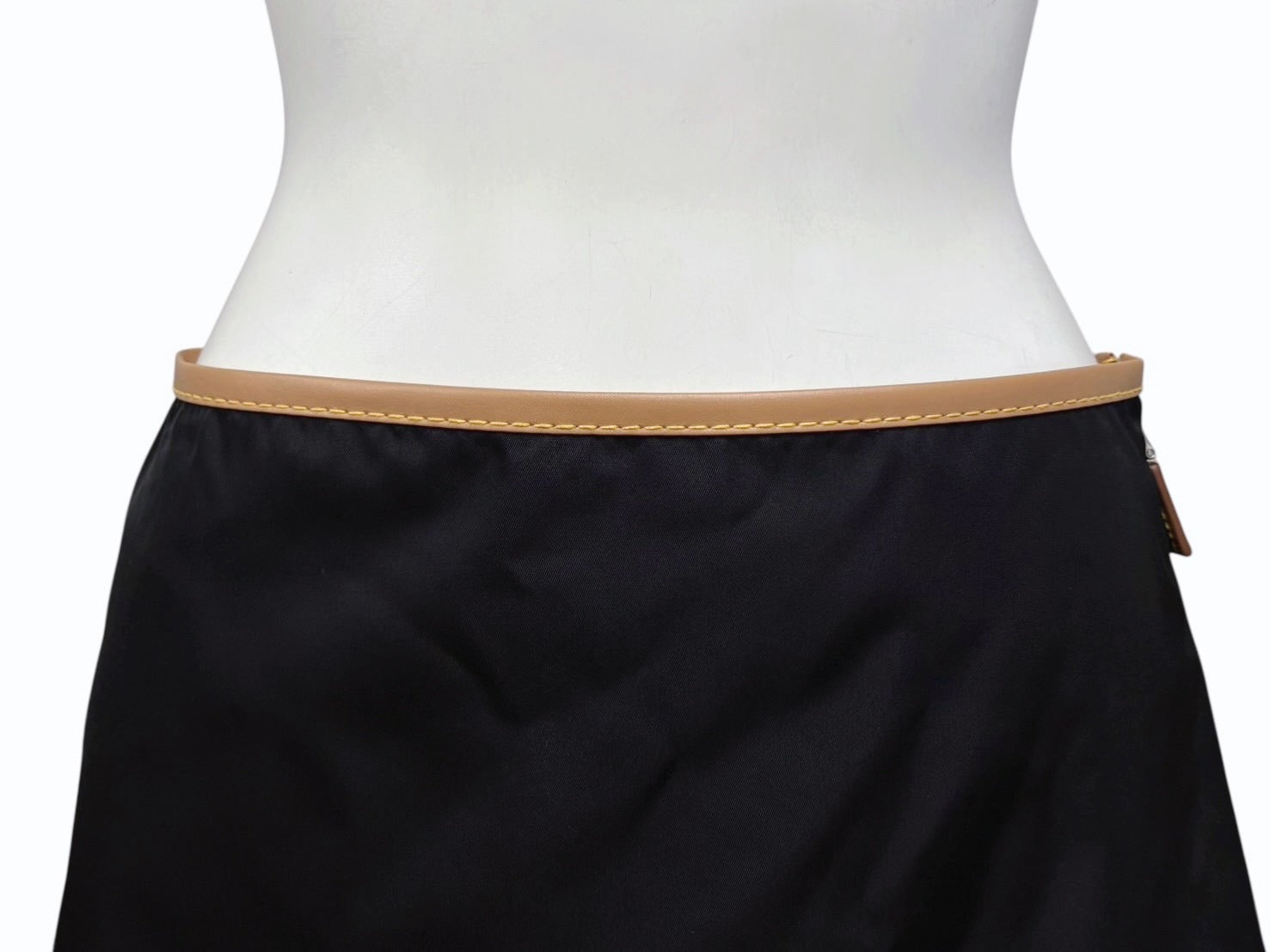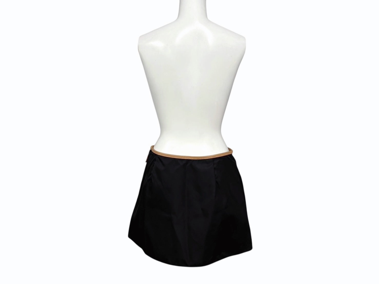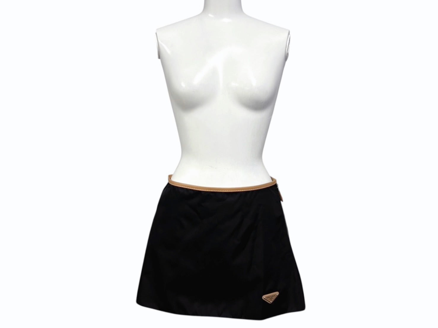 新品未使用 PRADA プラダ レザートリムミニスカート トライアングルロゴ 21H969 ナイロン ブラック ブラウン サイズ38 中古 4b008815