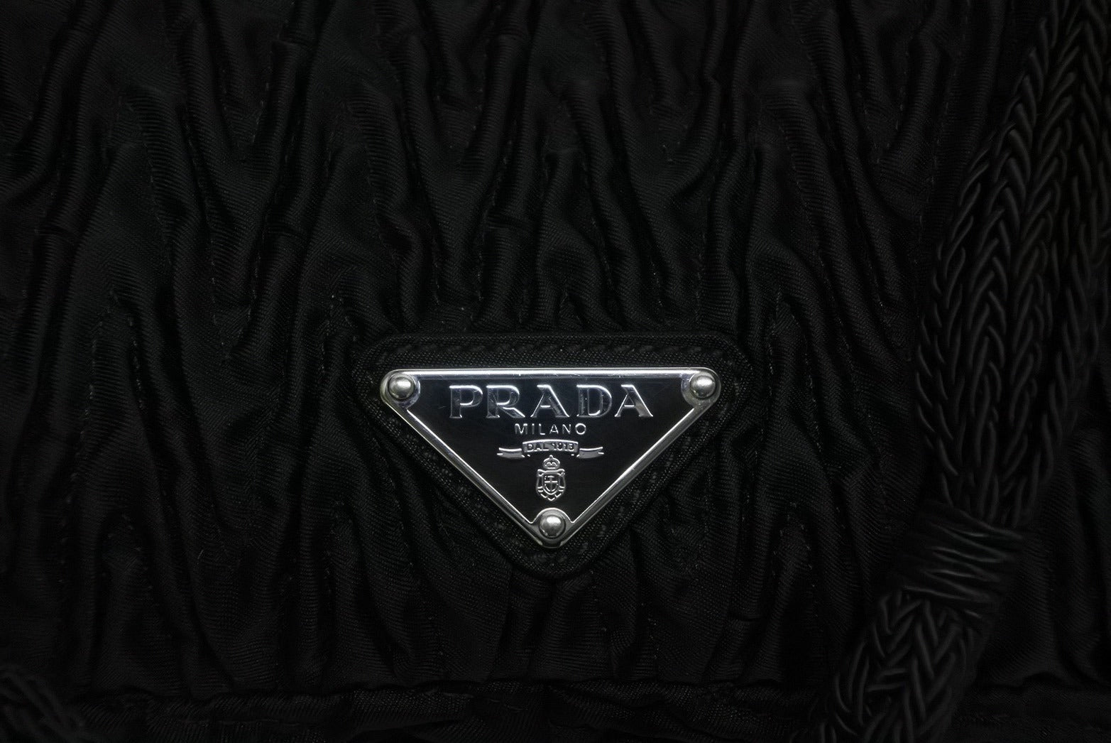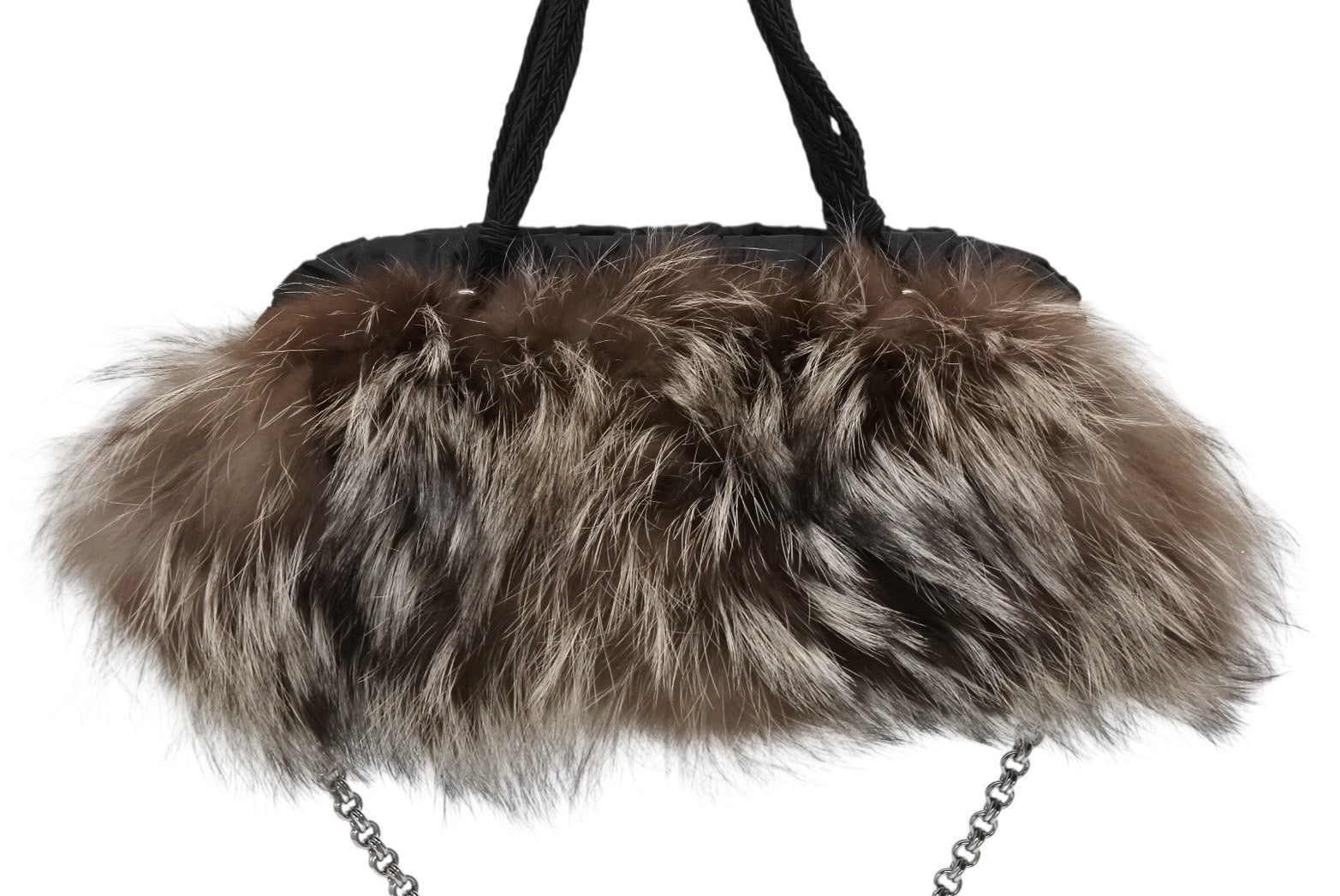 極美品 PRADA プラダ 2WAYバッグ 5083 トライアングルロゴプレート ナイロン ファー ブラック シルバー金具 中古 4b009196