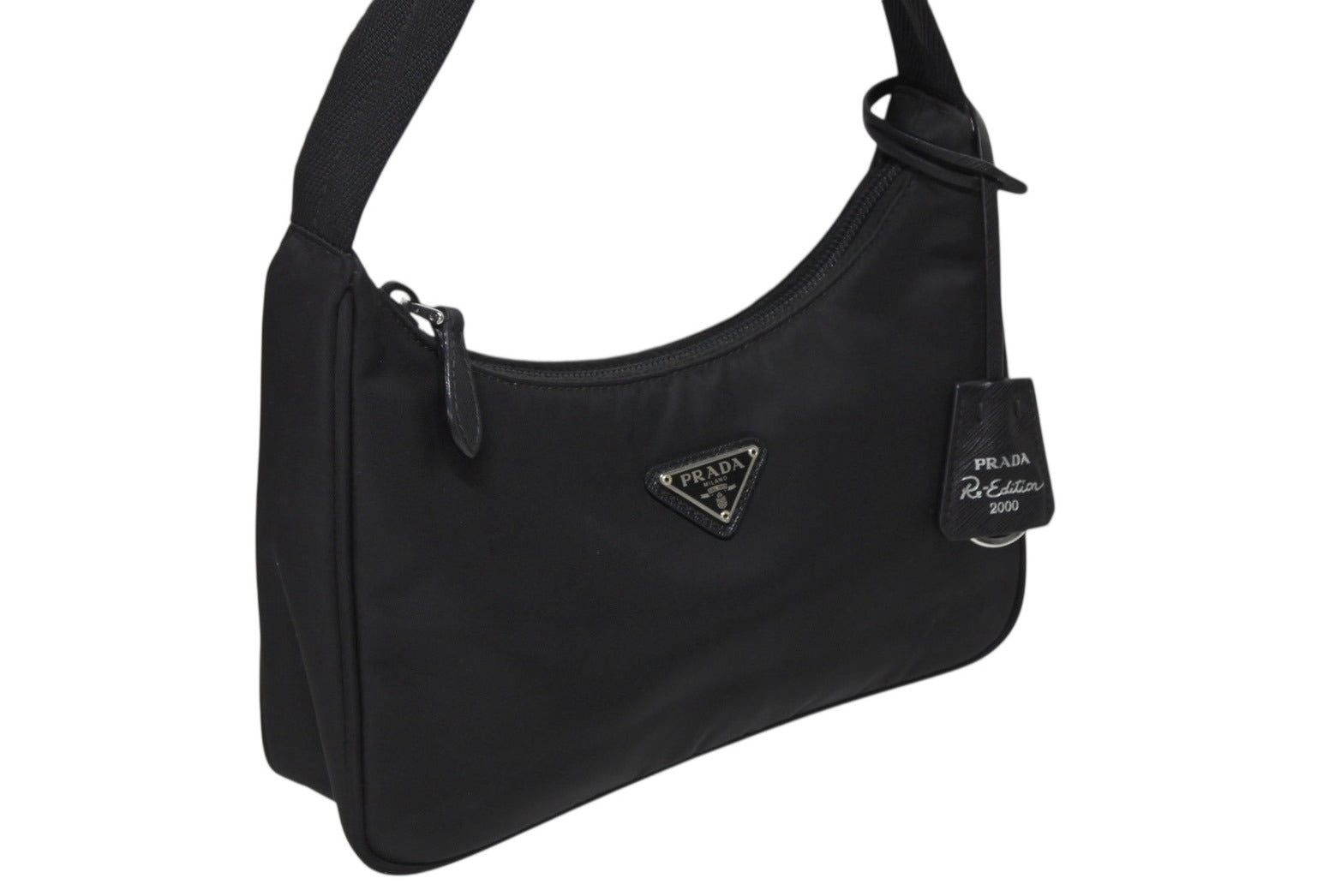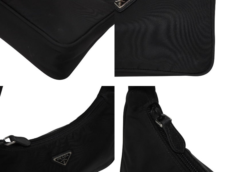 極美品 PRADA プラダ ホーボー ハンドバッグ ワンショルダーバッグ MV515 トライアングルロゴ ナイロン ブラック 中古 4b009221
