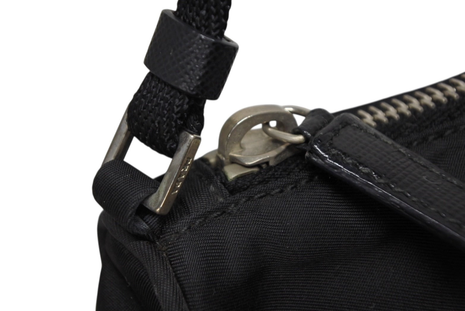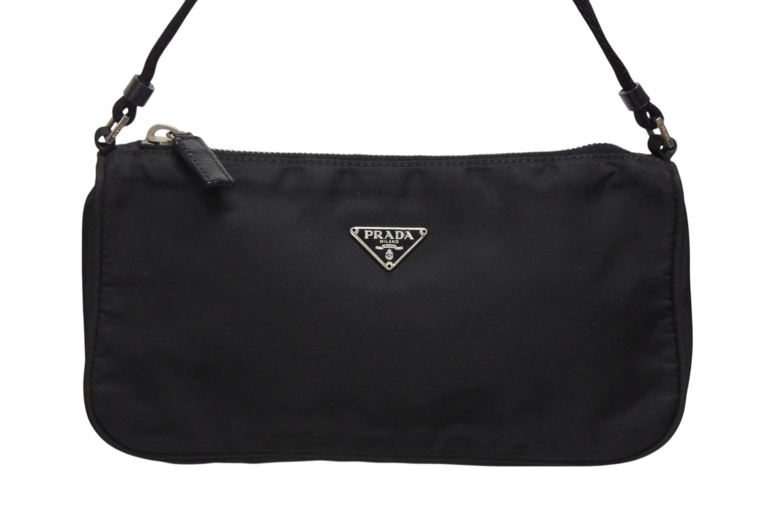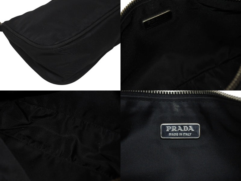 PRADA プラダ ハンドバッグ アクセサリーポーチ トライアングルロゴ イタリア製 ナイロン ブラック シルバー金具 美品 中古 4b009645