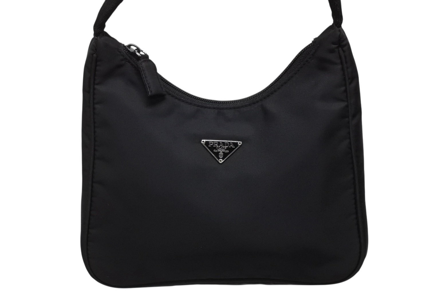 PRADA プラダ ホーボー ハンドバッグ ワンショルダーバッグ MV515 トライアングルロゴ ナイロン ブラック 美品 中古 4b009980