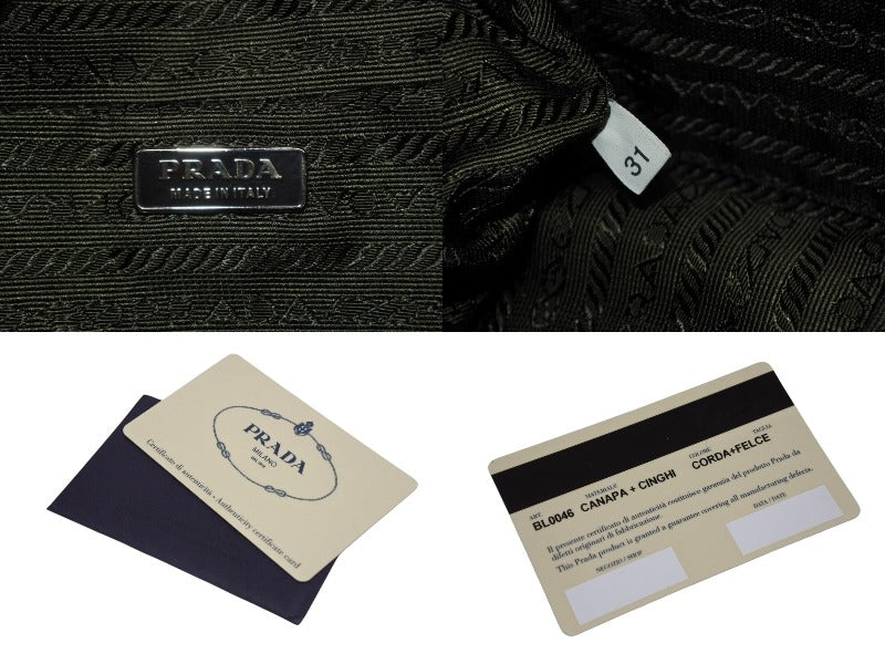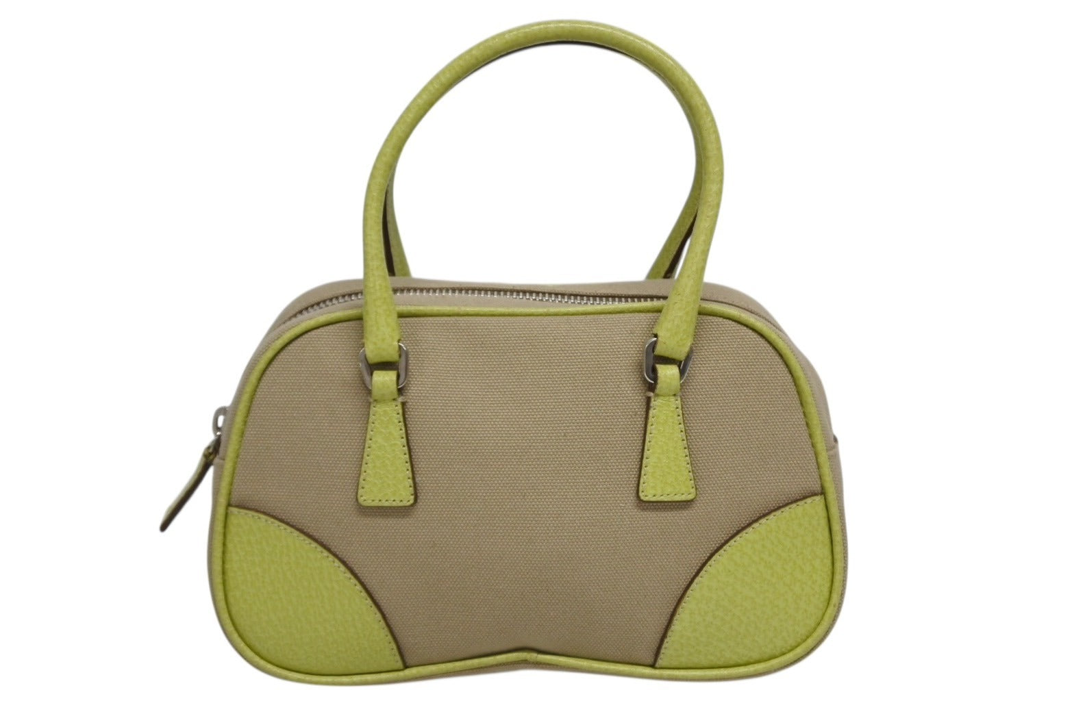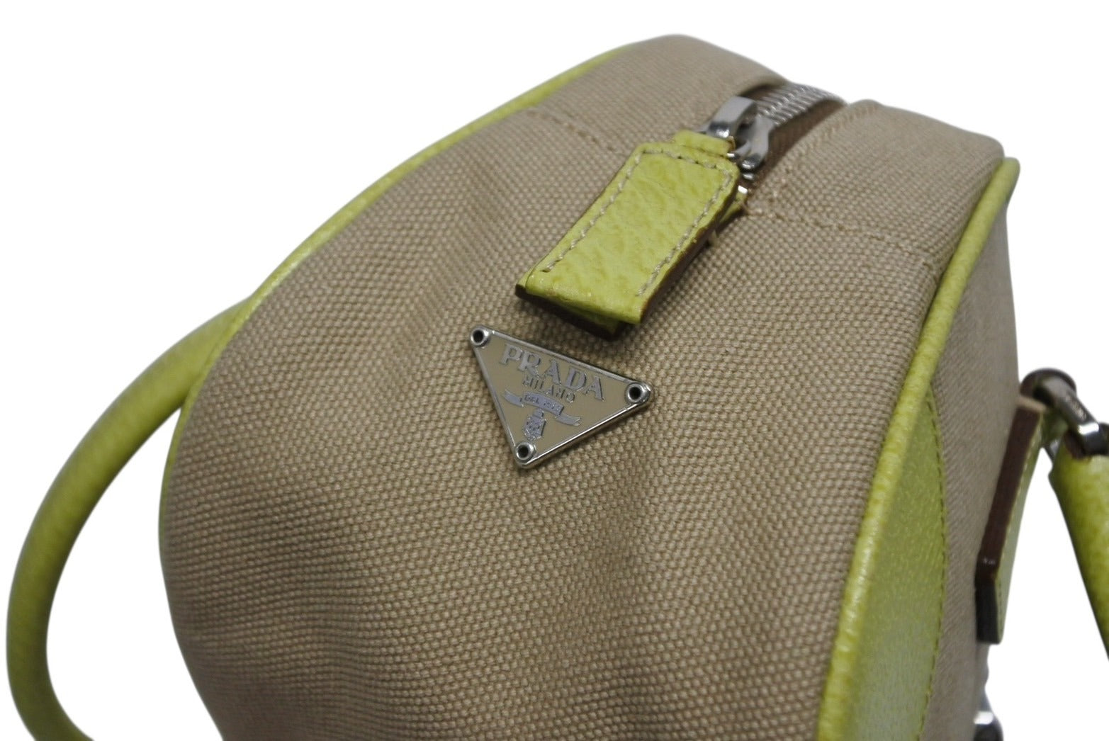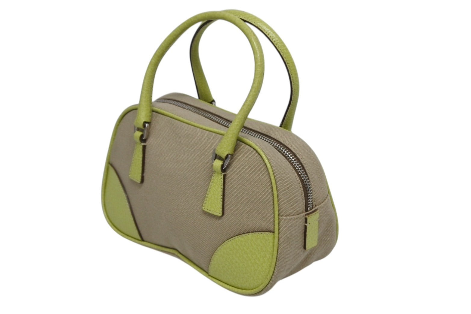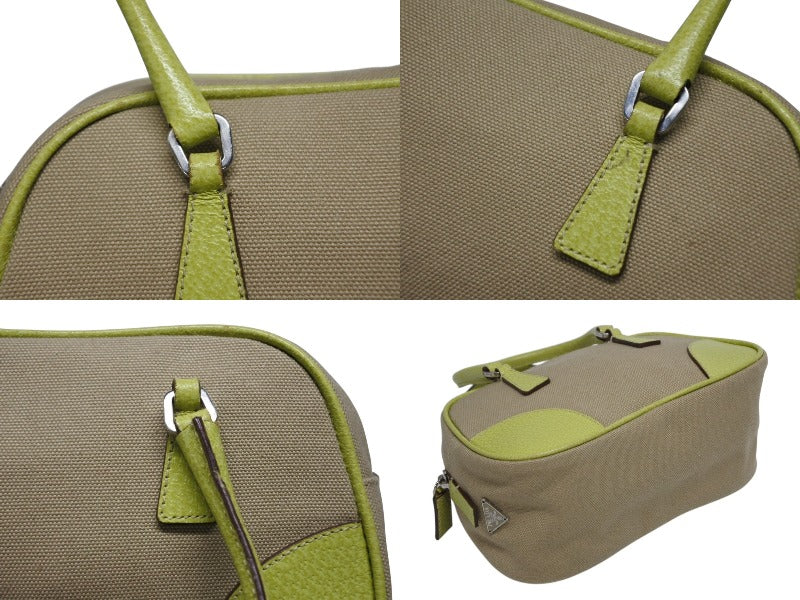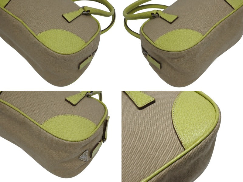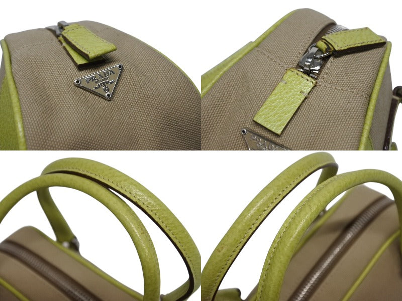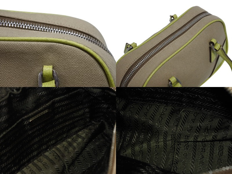 PRADA プラダ ミニボストンバッグ ハンドバッグ トライアングルロゴ BL0046 レザー キャンバス ベージュ グリーン 美品 中古 4b010109