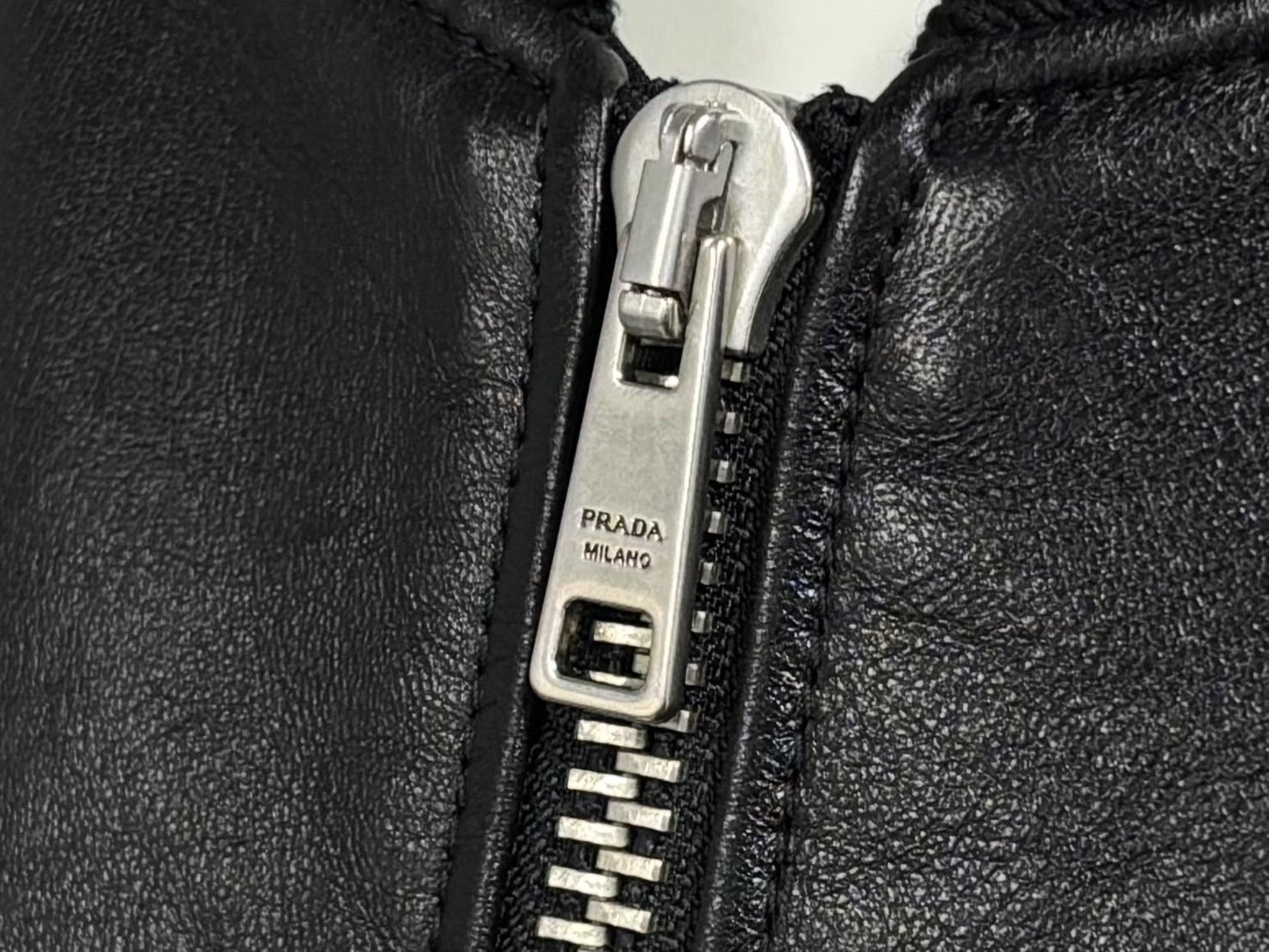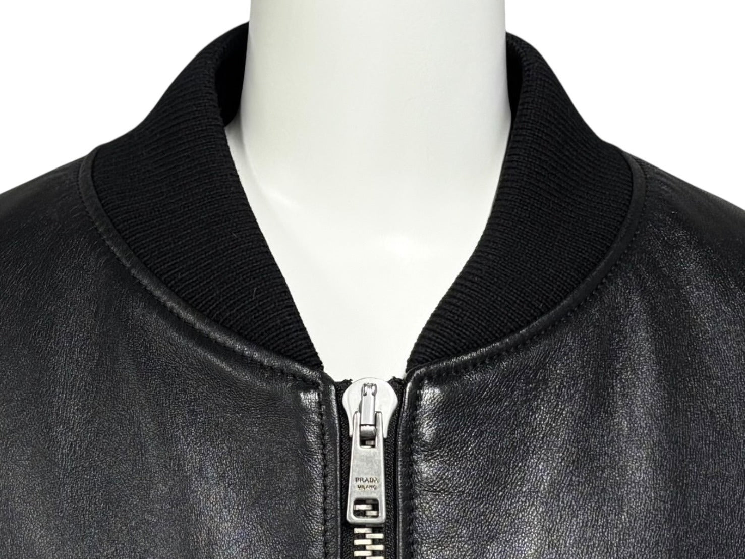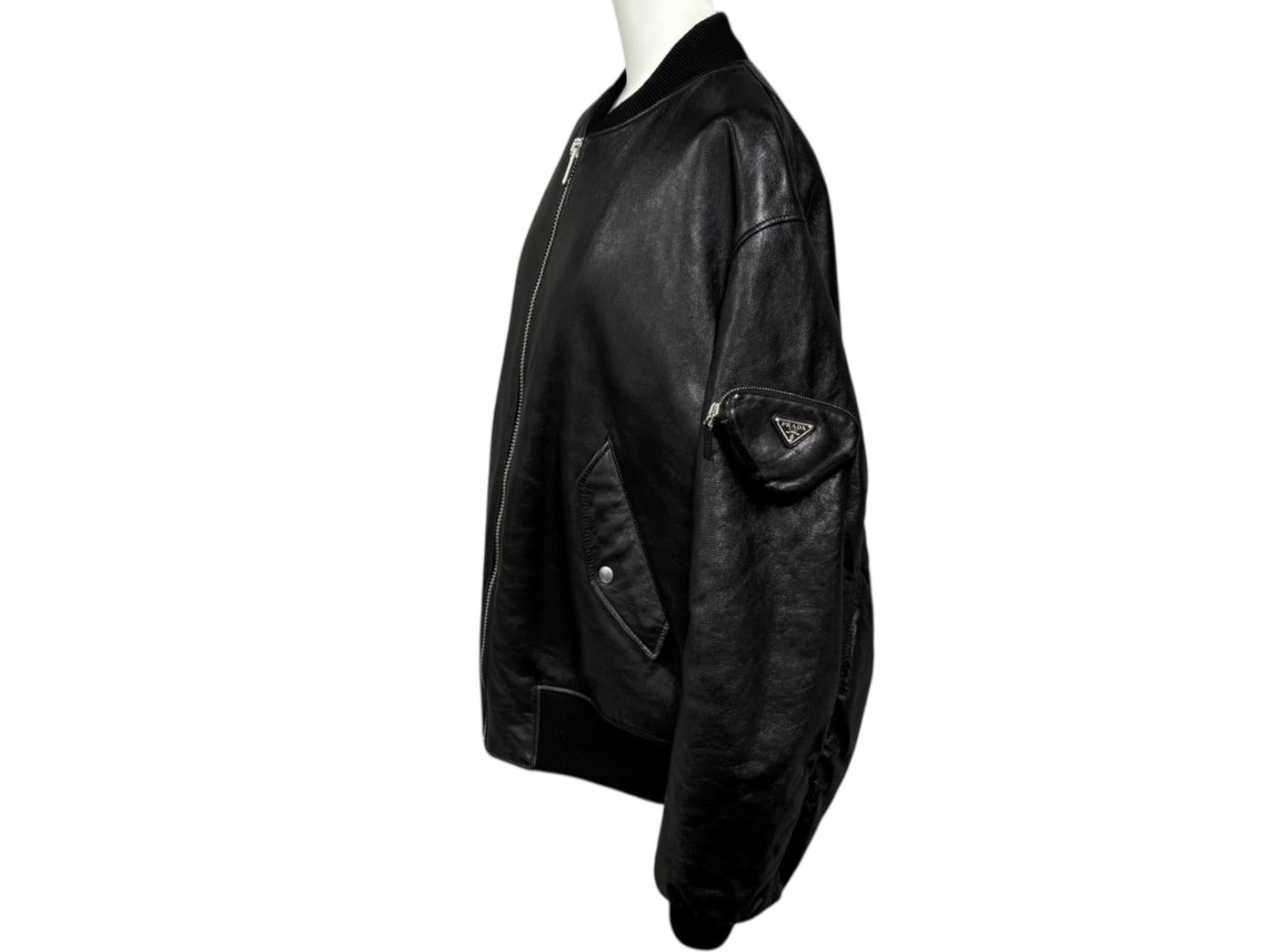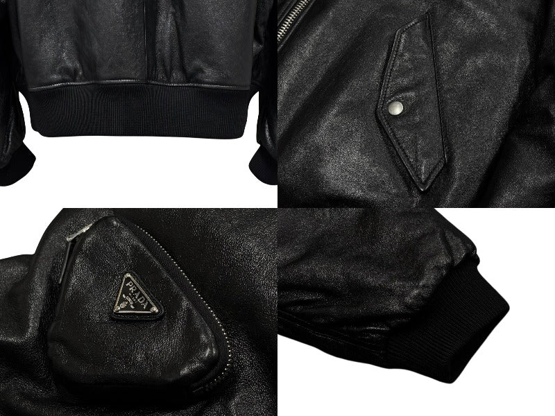 極美品 PRADA プラダ 21AW Nappa Leather Bomber Jacket ボンバージャケット MA-1 UPW399 ナッパレザー ブラック 中古 4b010304