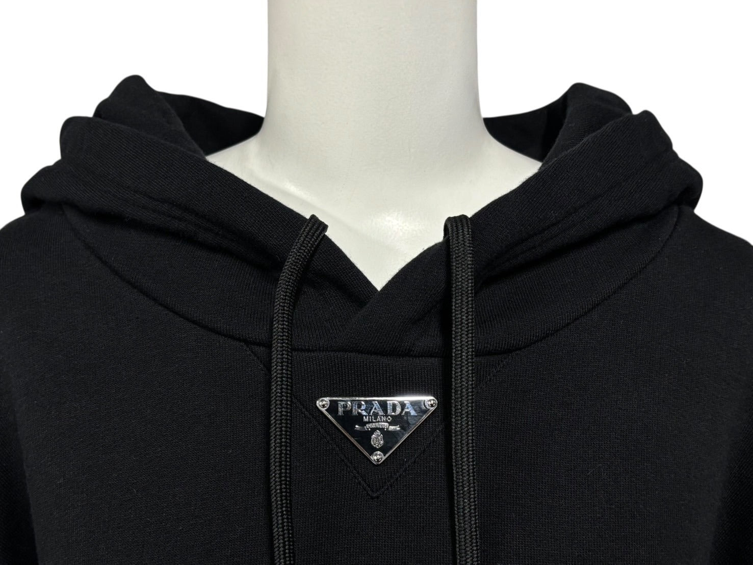 極美品 PRADA プラダ パーカー フーディ トライアングルロゴ UJL45B コットン ナイロン ブラック シルバー金具 サイズL 中古 4b010341