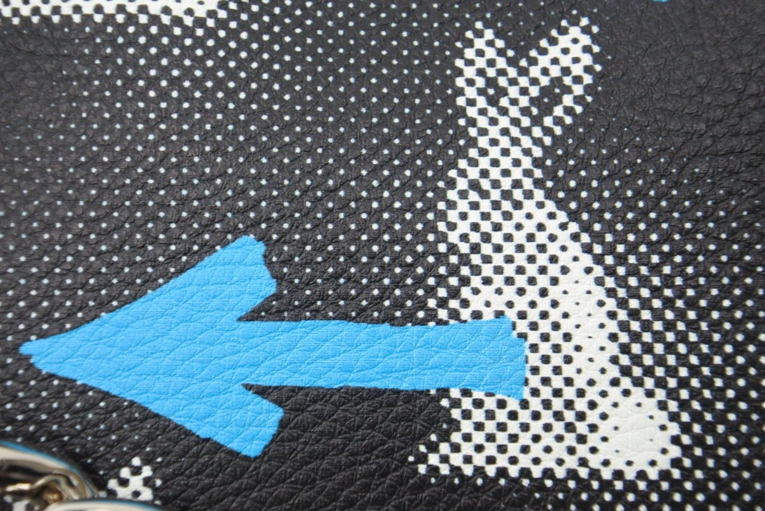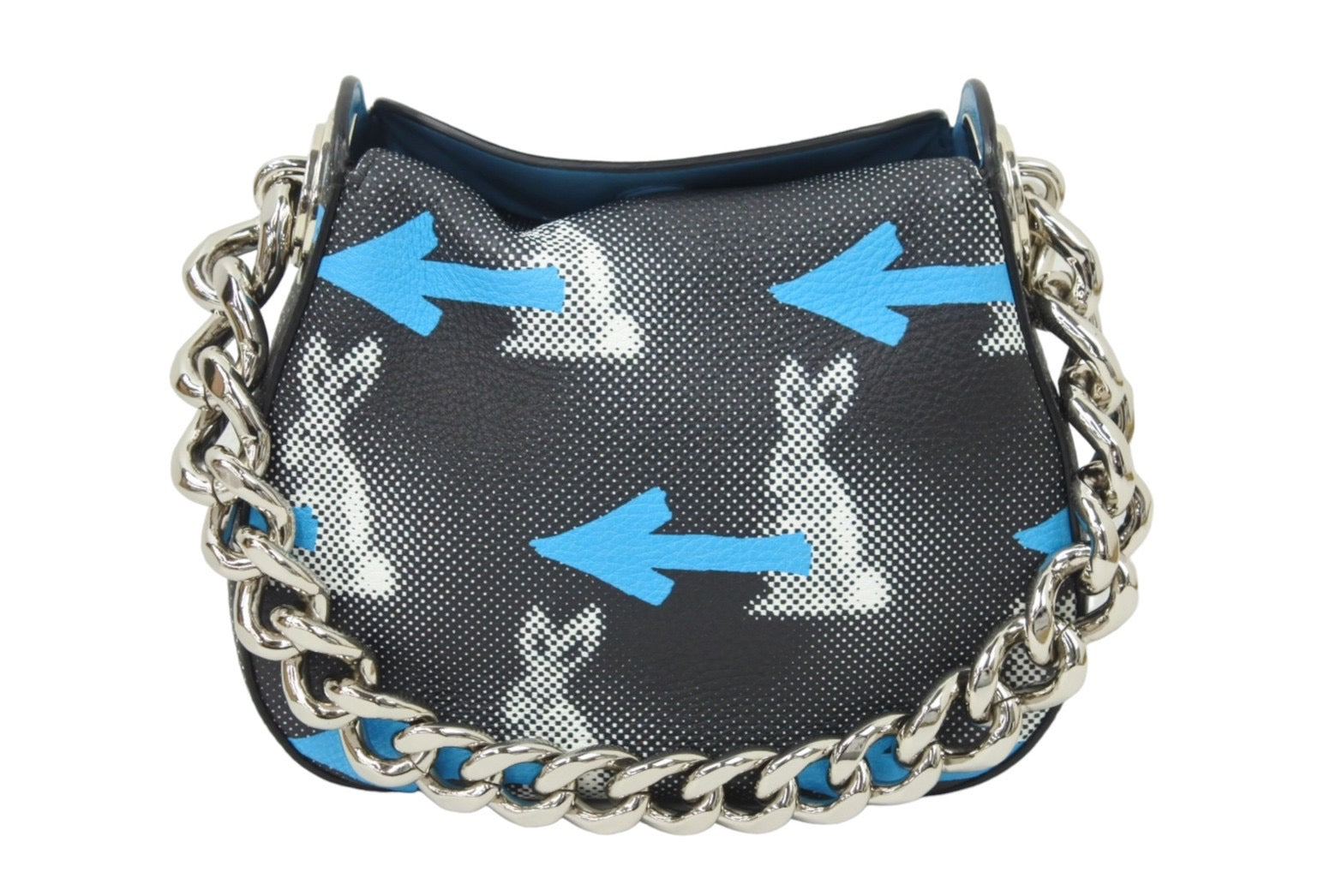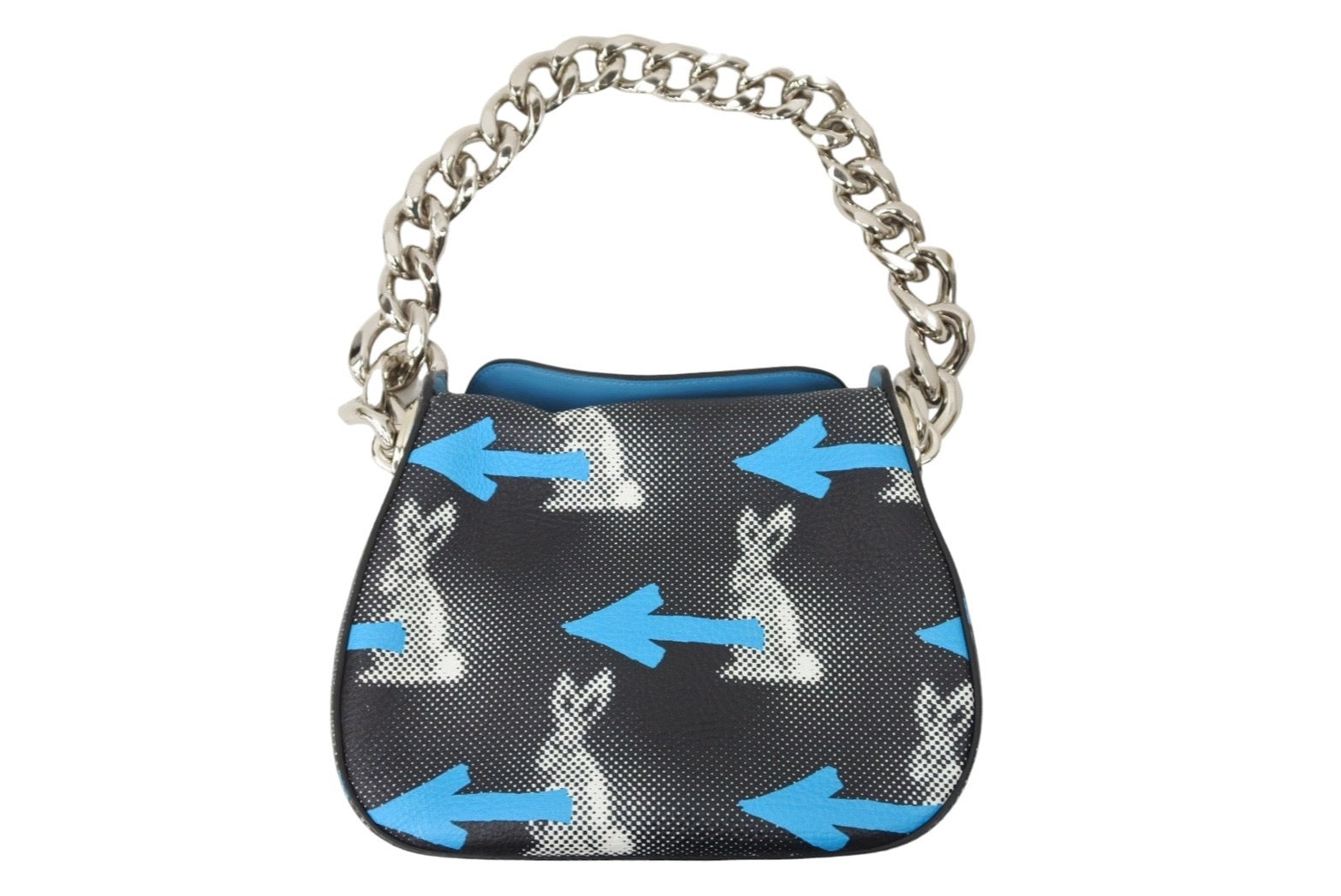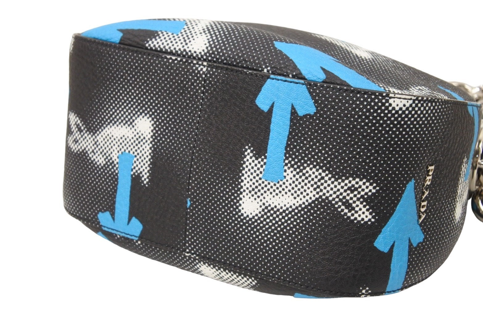 PRADA プラダ ハンドバッグ ブルー ブラック ウサギ柄 矢印 レザー グラフィック シルバー金具 美品 中古 50115