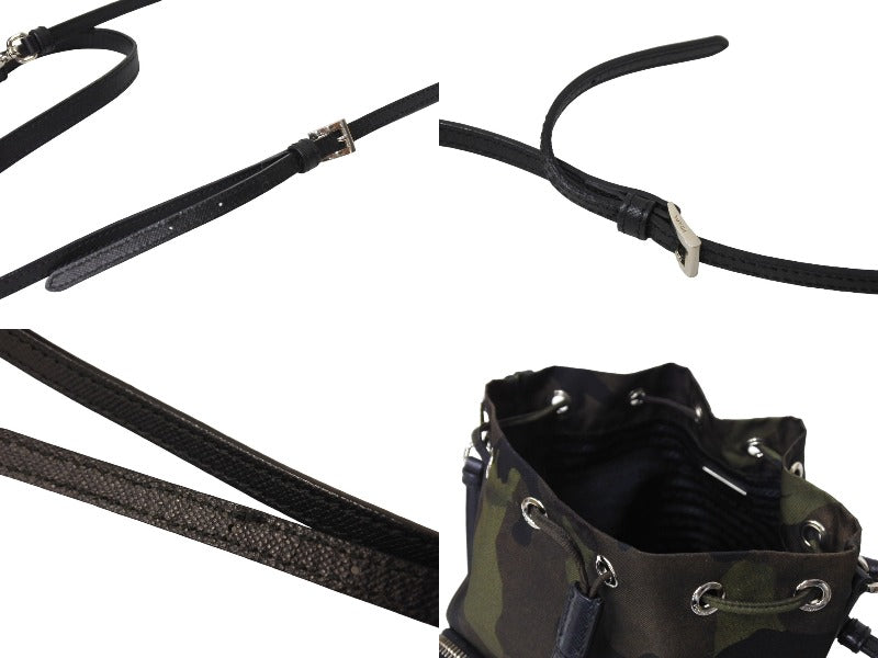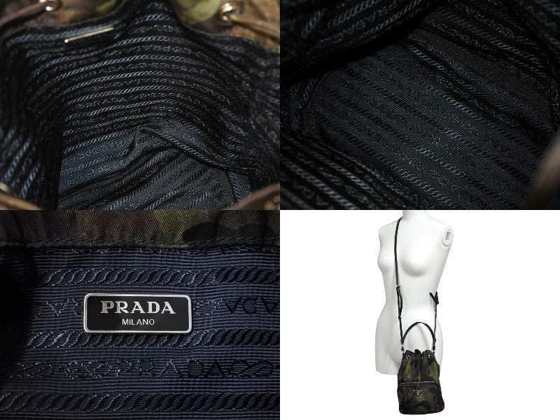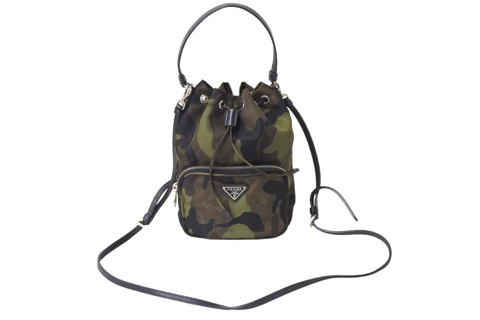 極美品 PRADA プラダ ハンドバッグ 1N1864 迷彩 カモフラ 巾着 ミニバッグ ナイロン 中古 66955