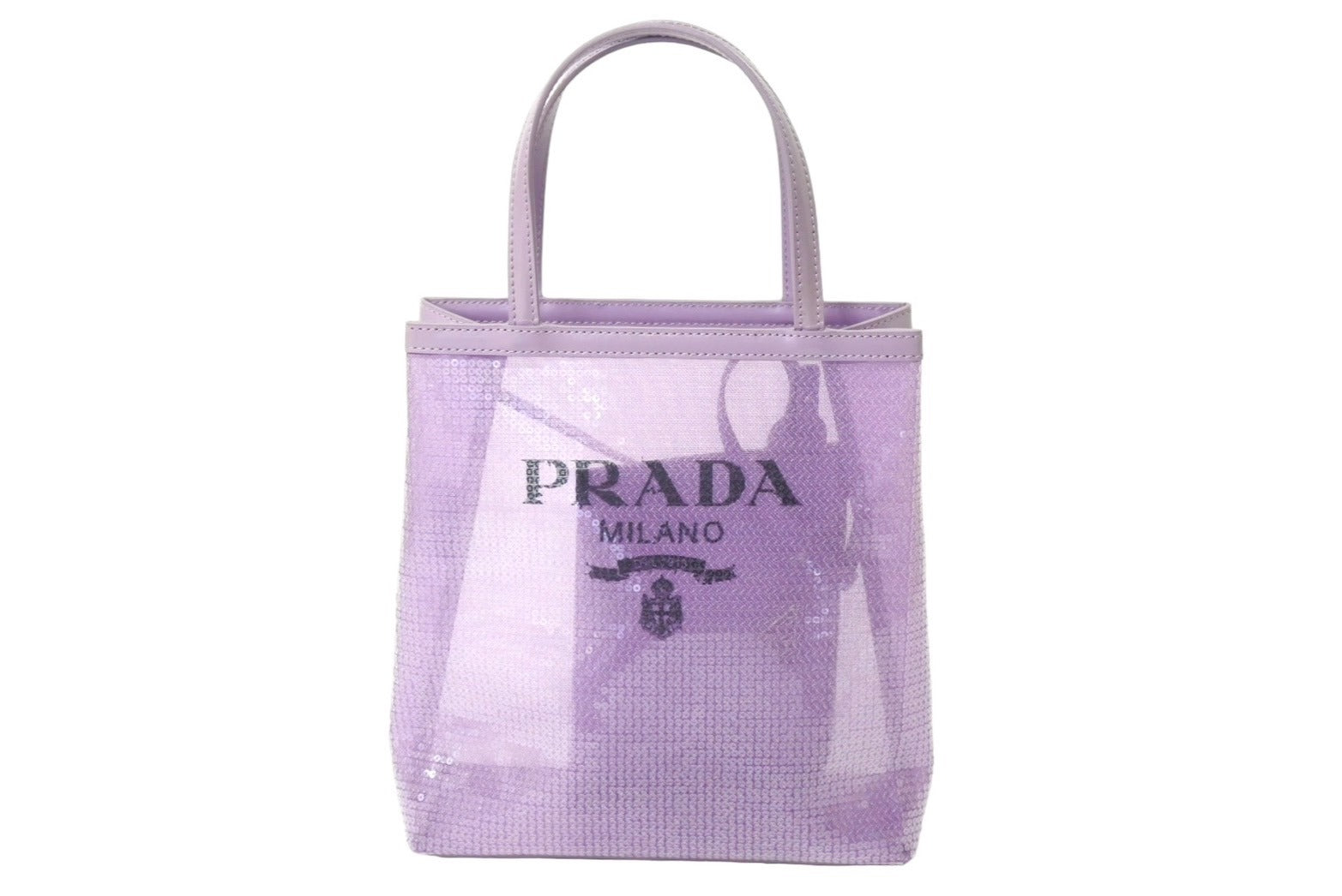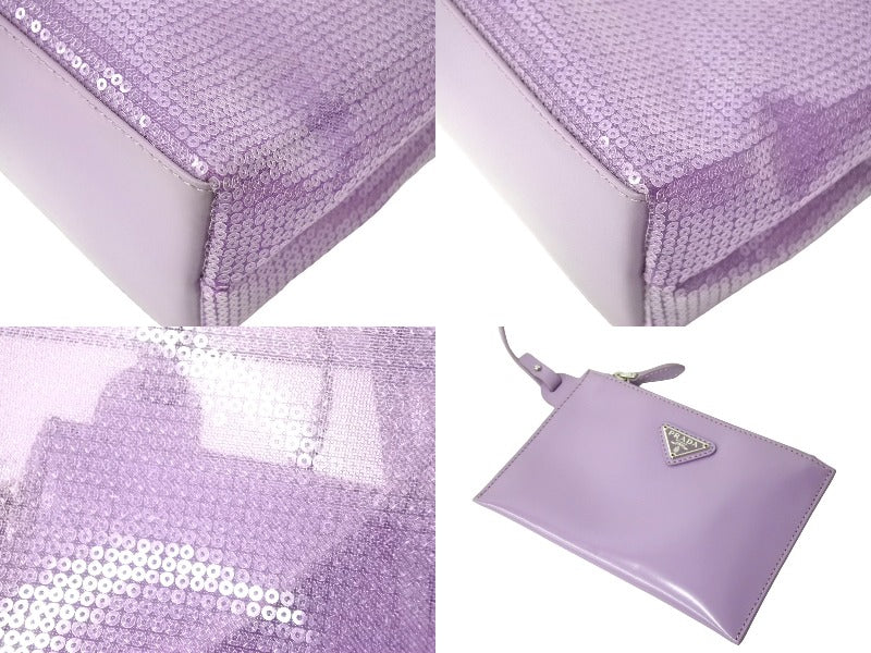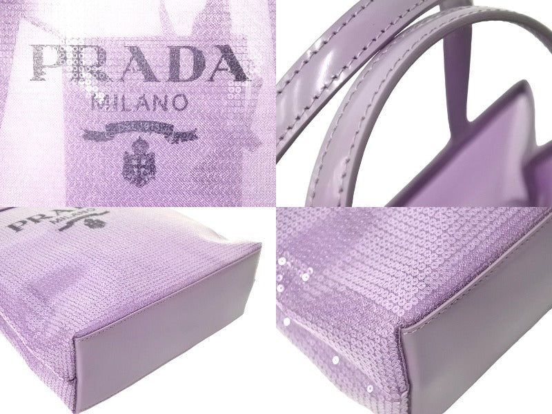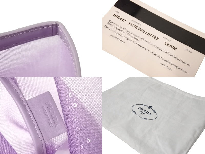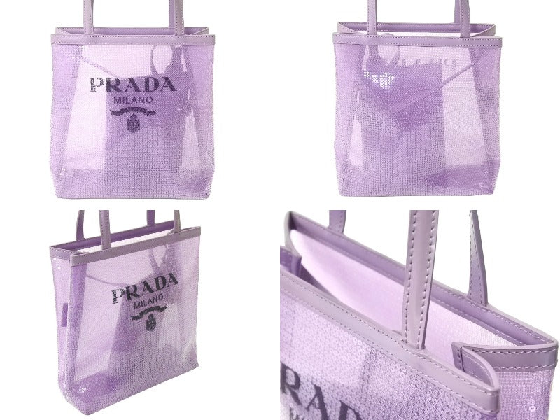 極美品 PRADA プラダ トートバッグ ハンドバッグ スパンコール メッシュ イタリア製 1BG417 パープル ブラック 中古 67045