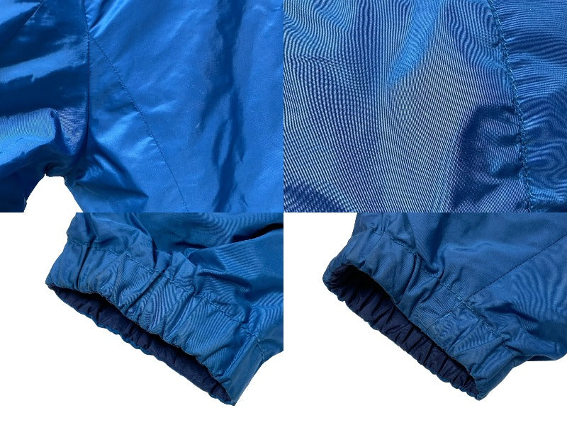 ブルー側の両袖口、ポケット付近、フードにシミ、汚れあります。金具に小傷ありますが、その他目立った傷や汚れの少ない状態です。