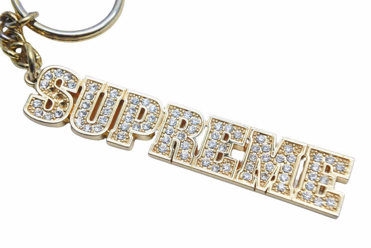 SUPREME シュプリーム 18SS ブロックロゴ キーチェーン ゴールド ラインストーン アイスドアウト 中古 3547
