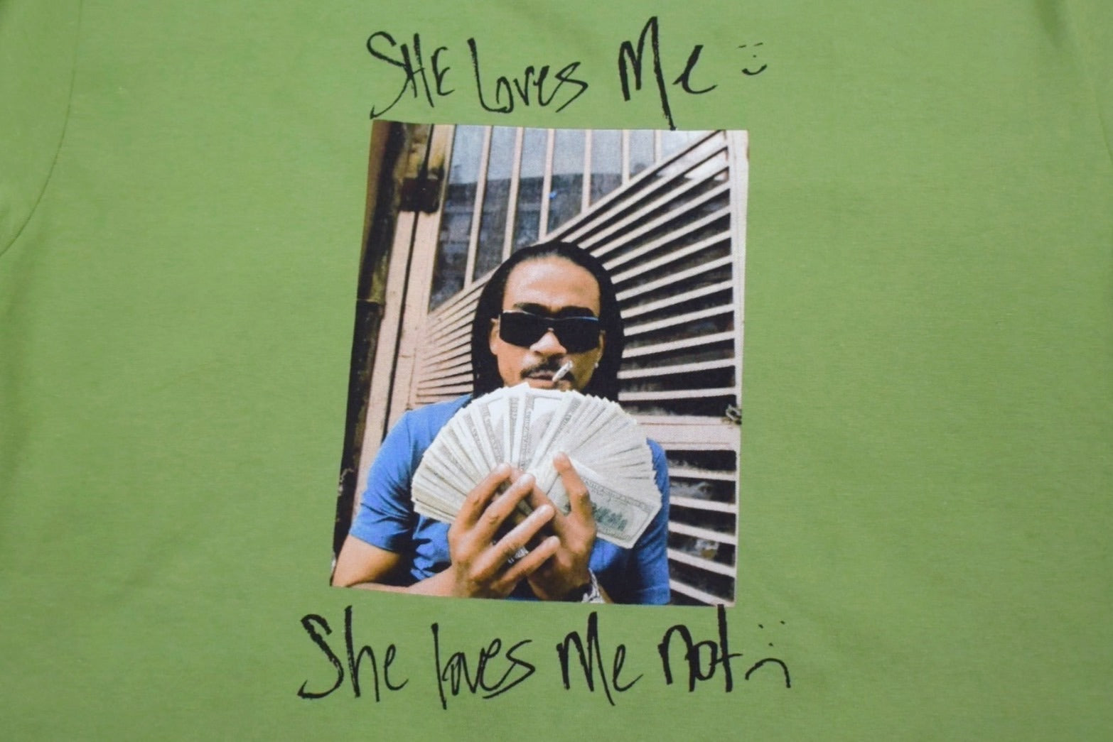 アメリカ、ニューヨーク州ハーレム出身のラッパー" Max B(マックス ビー)"とのコラボレーションです。2000年代初頭から活動を始め、"Wavy"というスラングを広めたことで知られ、数多くのアーティストに影響を与えた伝説的なラッパーのフォトプリントTシャツです。