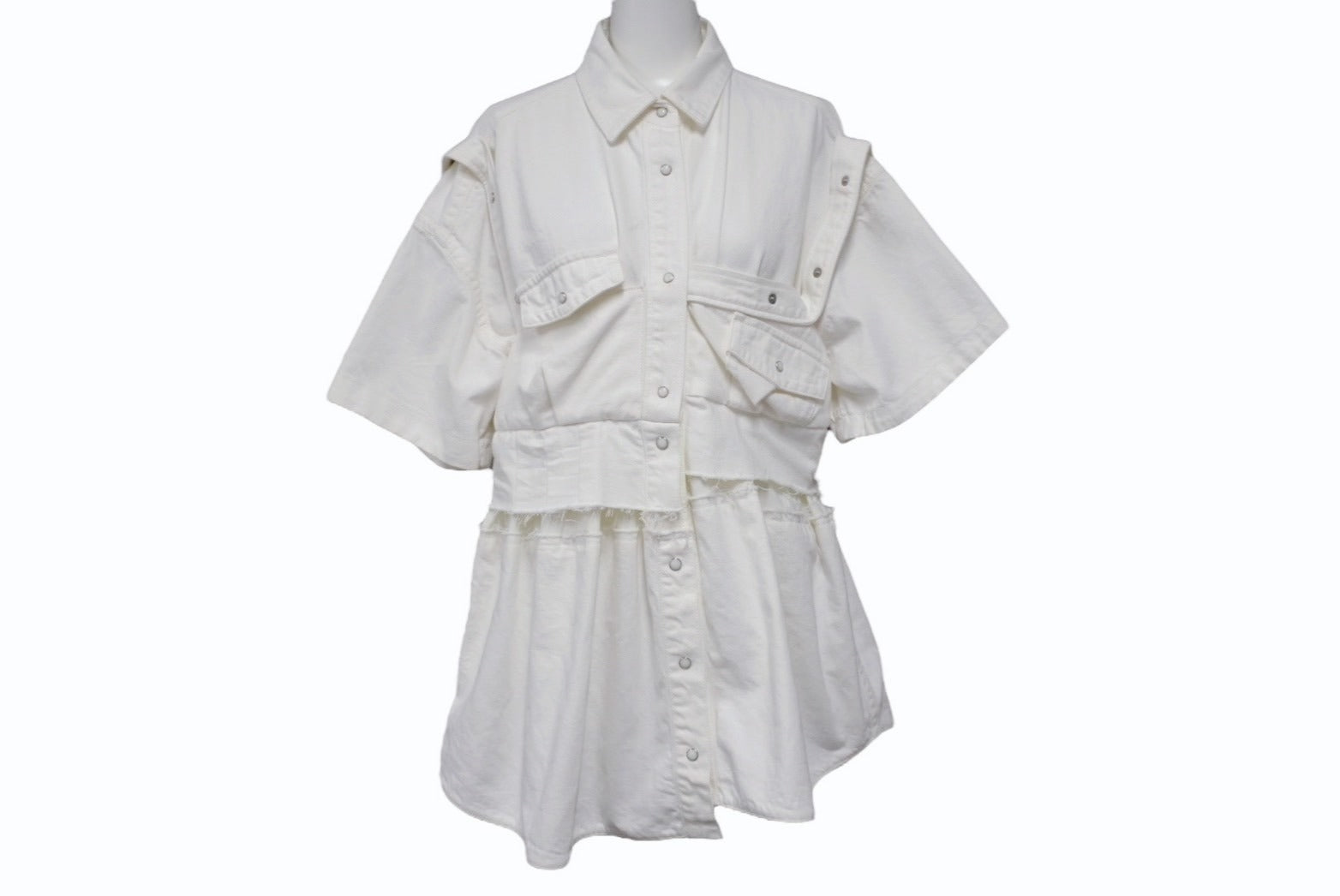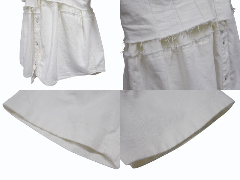 Sacai サカイ ワンピース 半袖シャツ ドレス ボタン コットン ホワイト シルバー金具 美品 中古 4b004526
