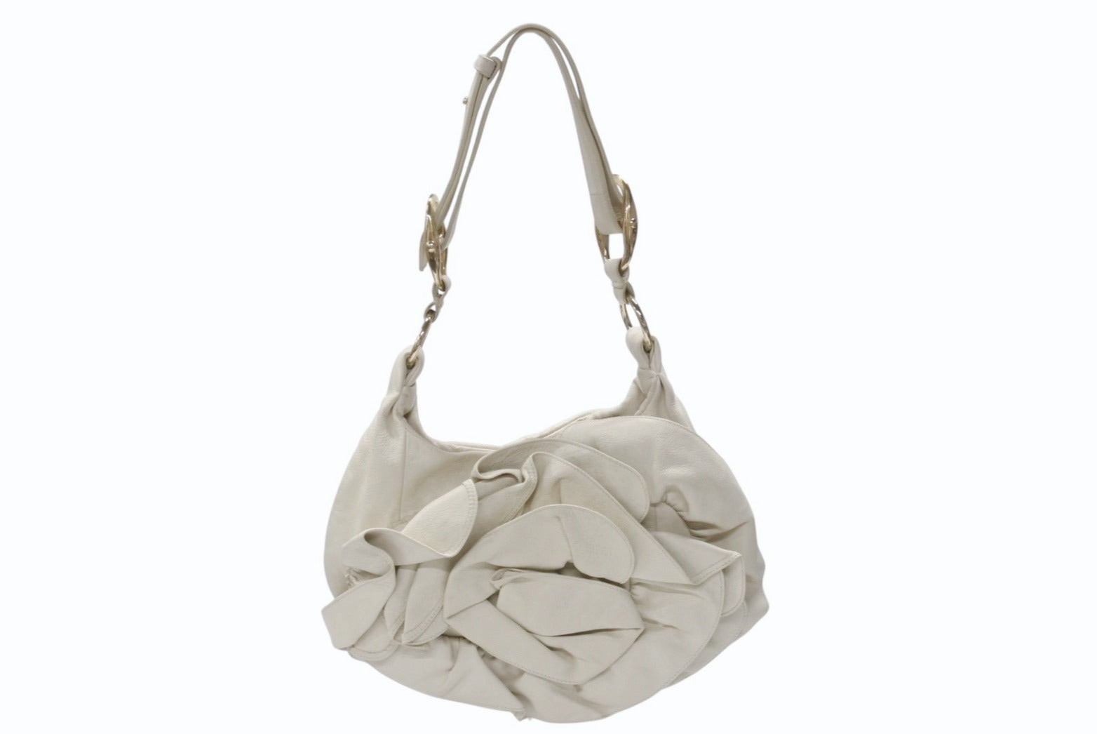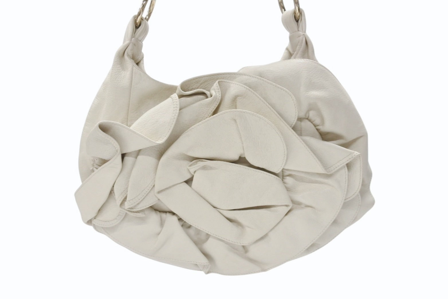 くしゅくしゅと花びらのようなデザインが特徴的な可愛らしい上品なバッグです。