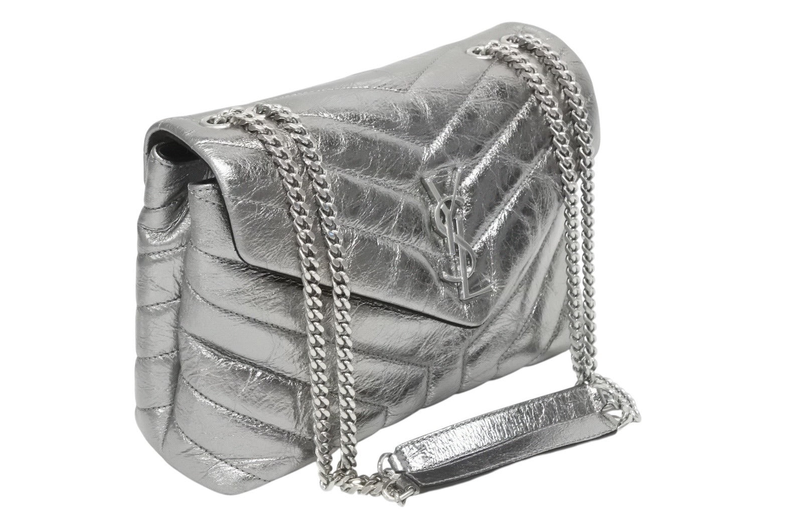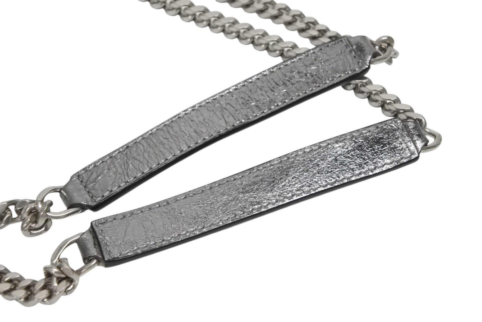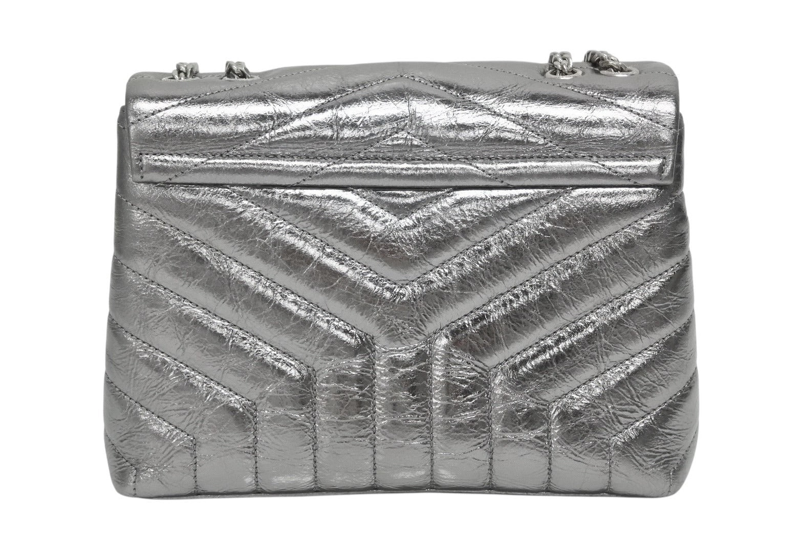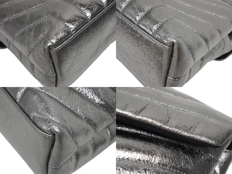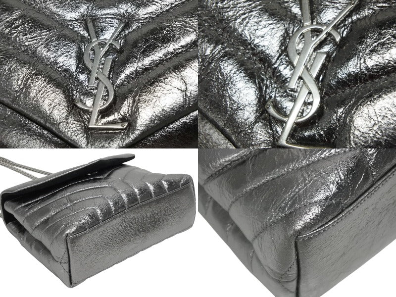 極美品 YVES SAINT LAURENT イヴサンローラン ルル チェーンバック ショルダーバッグ スモール カーフスキン メタル シルバー 中古 4b009964