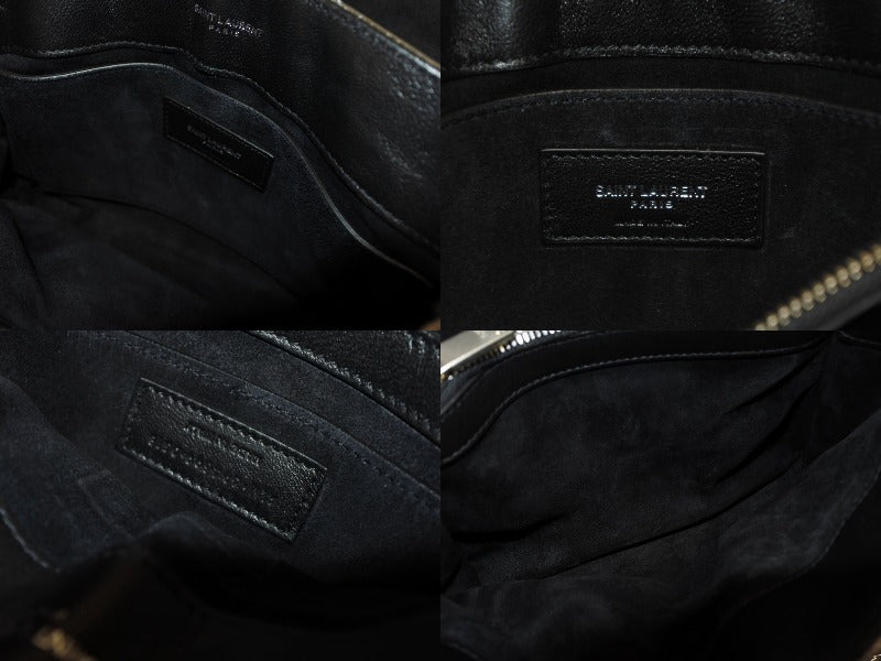 フロントフラップにはマットシルバートーンのYSLモノグラムディティールがあしらわれ、内側には仕切りのあるファブリック素材とジッパーポケットが備えられています。