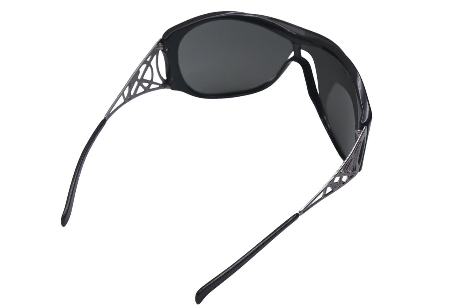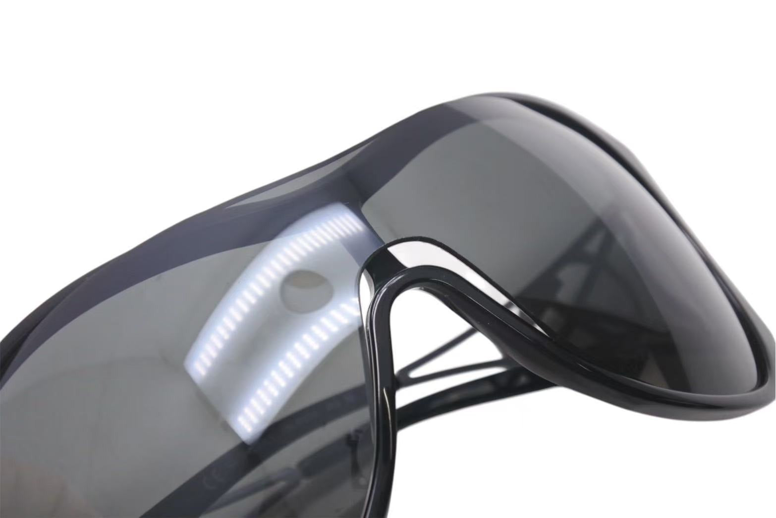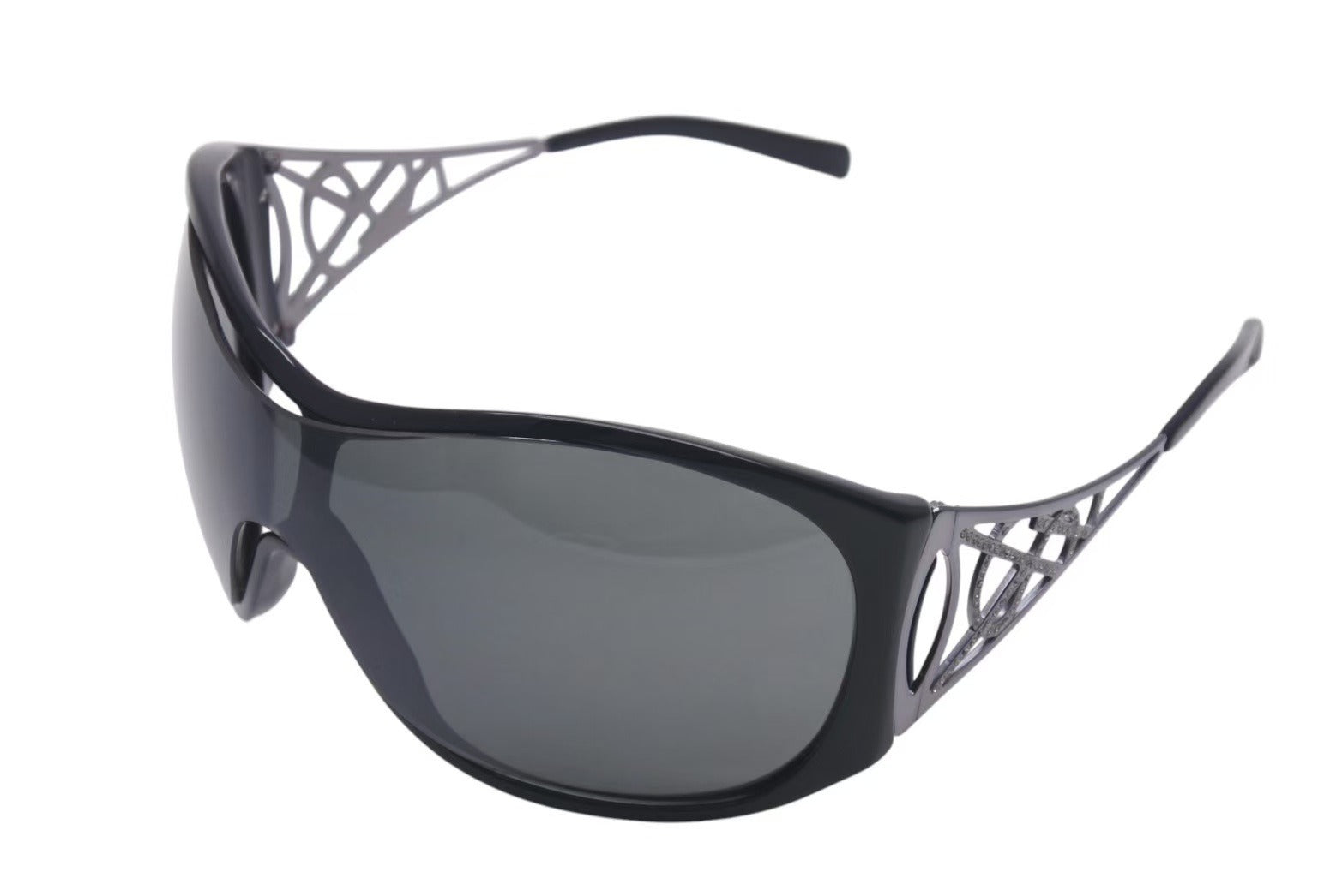テンプルに施されたラインストーン付きのロゴが目を惹くアイテムです。