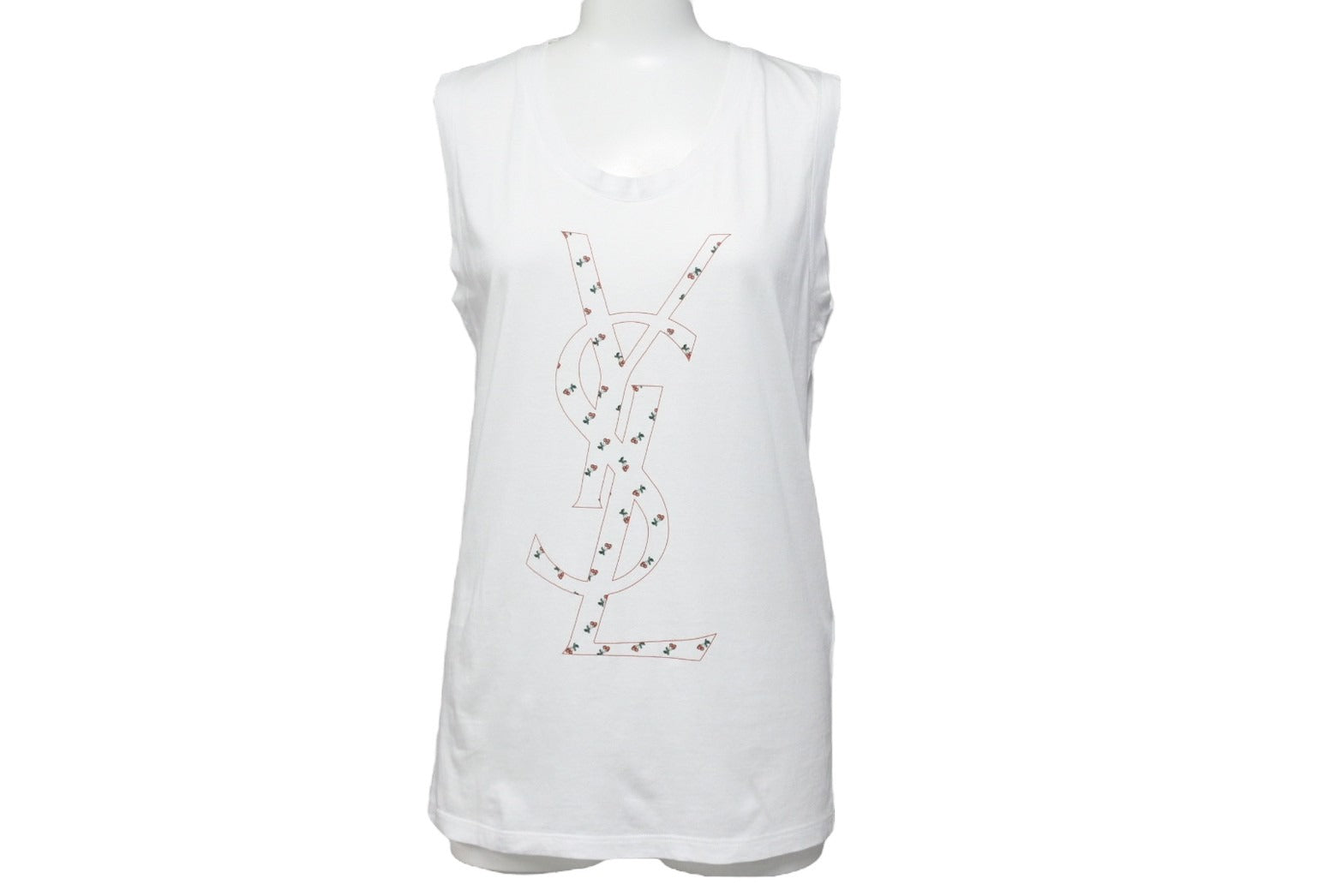 YVESSAINTLAURENT イヴサンローラン タンクトップ チェリー ロゴ 242779 Y1LOG コットン ホワイト サイズ38 美品 中古 51949