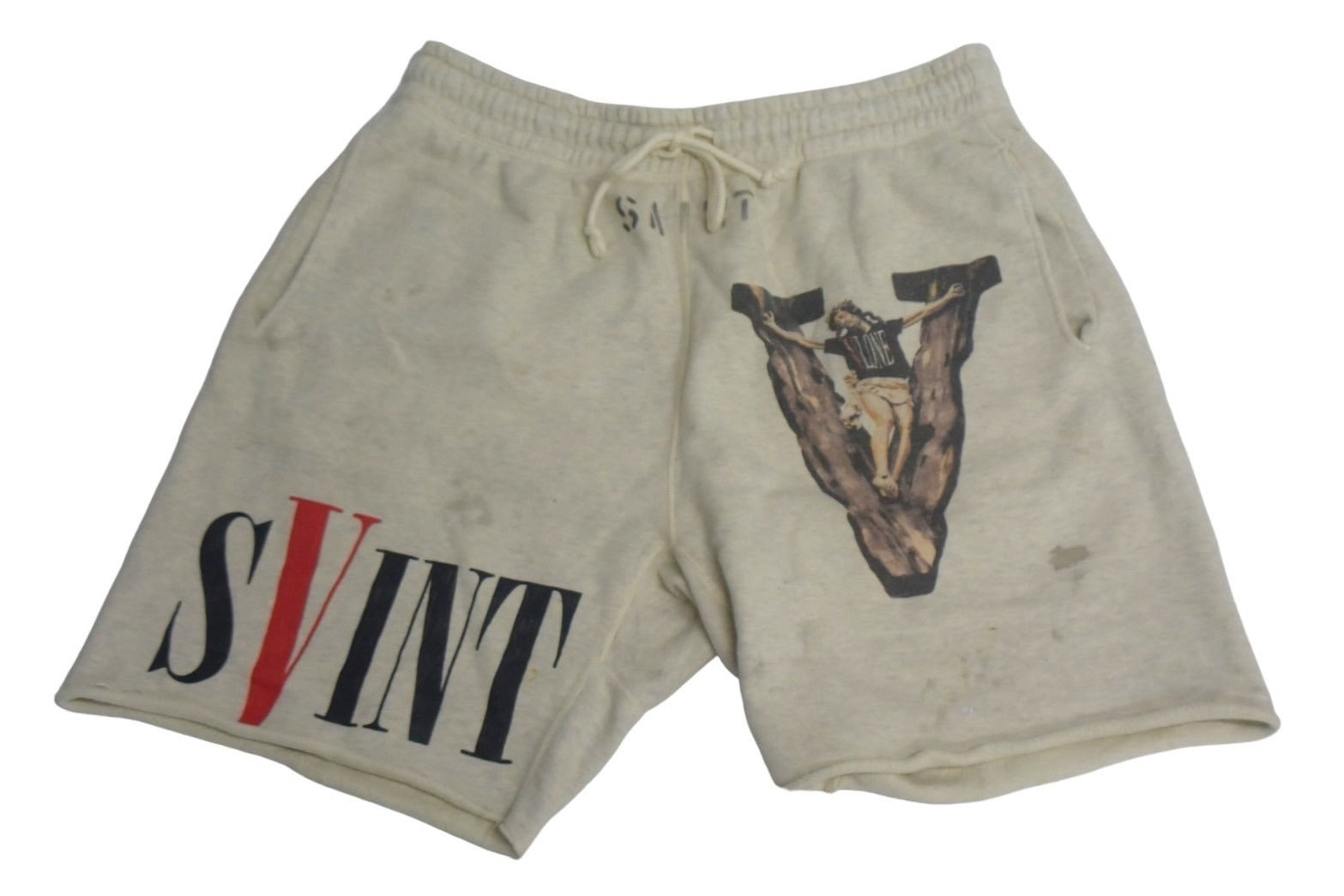 SAINT MICHAEL セントマイケル × Vlone ヴィーロン コラボ ショートパンツ スウェット コットン ベージュ グレー M 良品 中古 38100