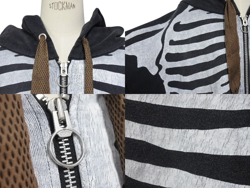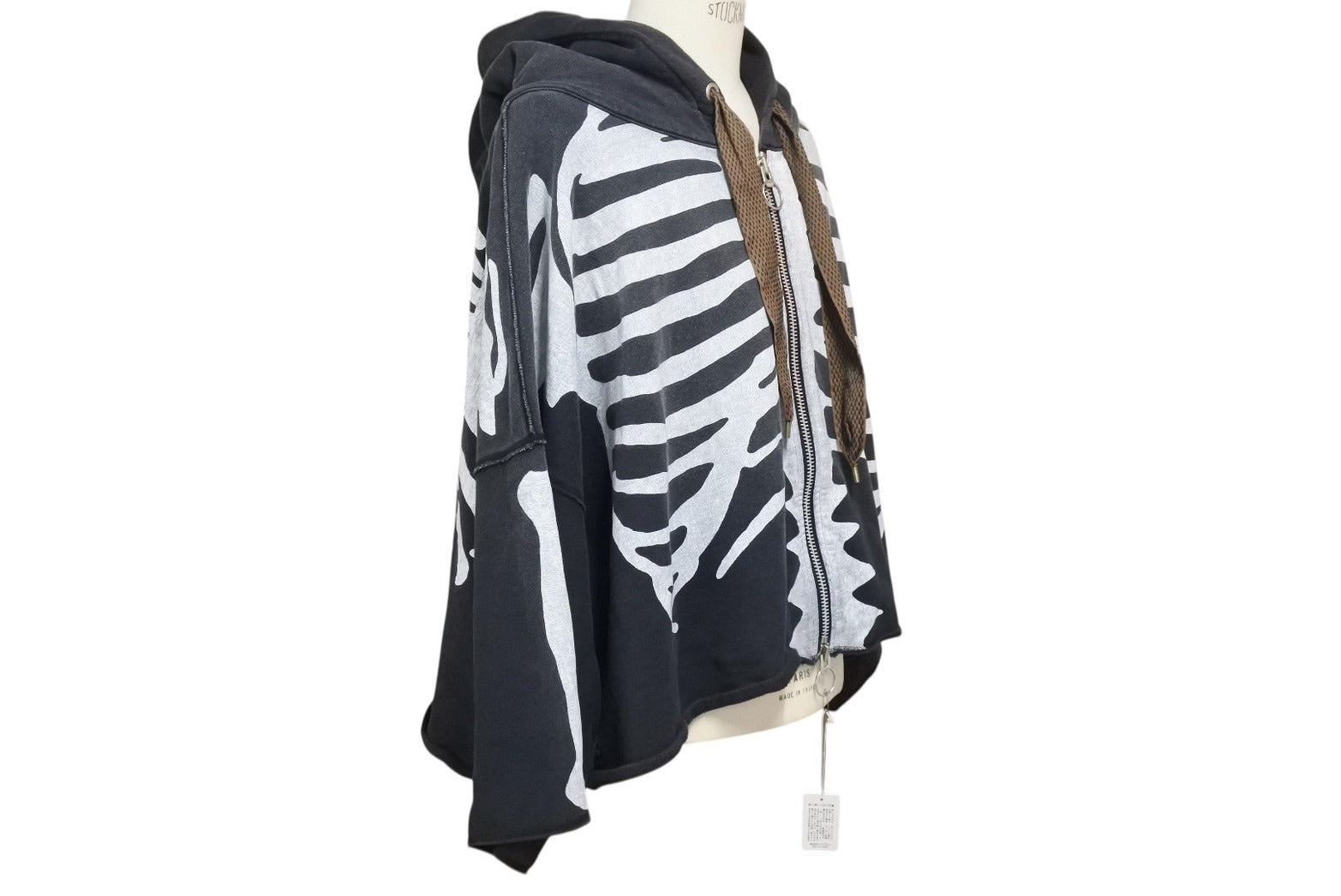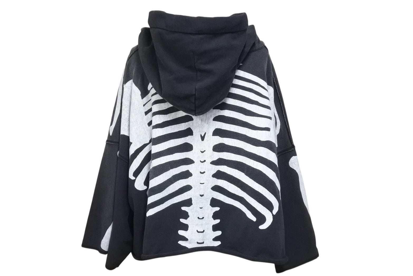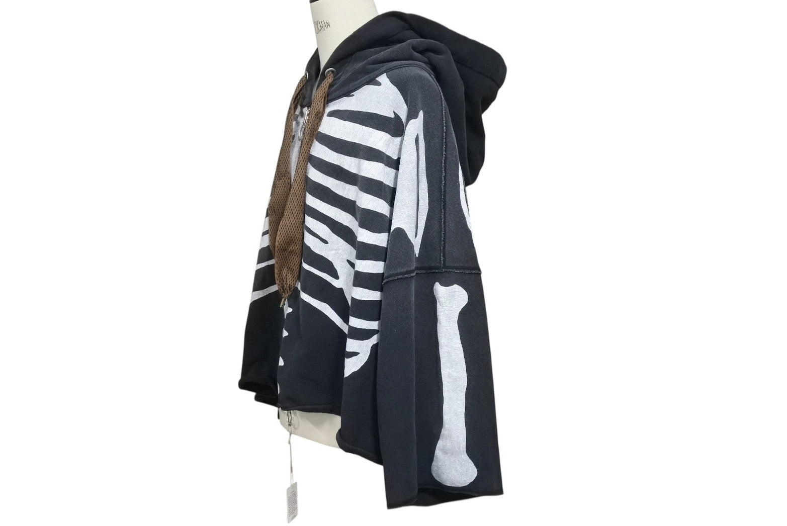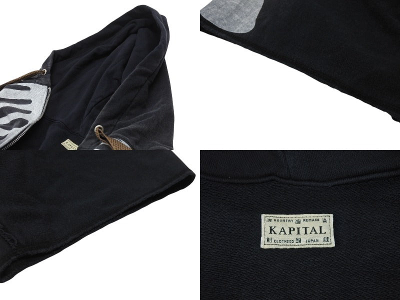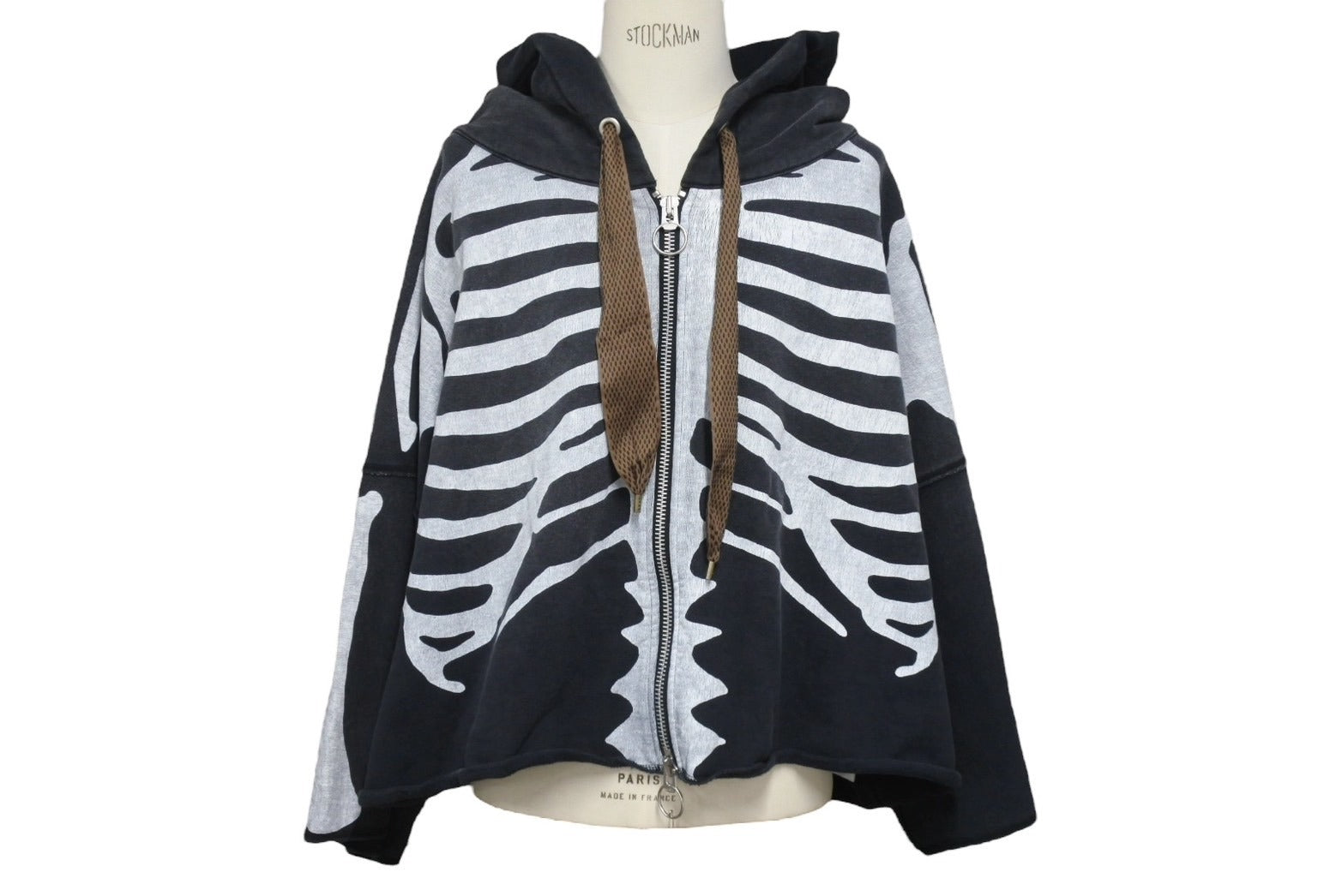 新品未使用 KAPITAL キャピタル 25SS 裏毛 デビルフードブルゾン パーカー ブラック ボーン 骨 K2504LC156 シルバー金具 サイズF 中古 4b006596