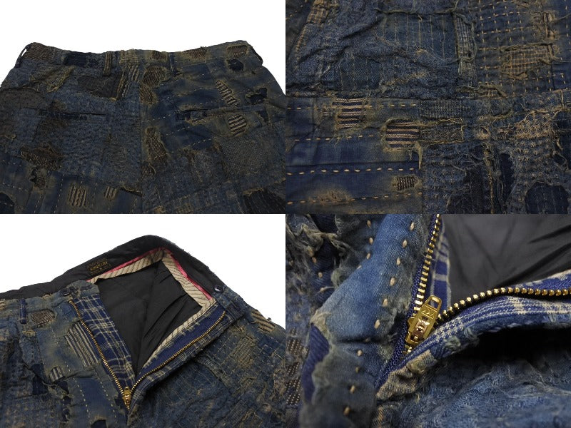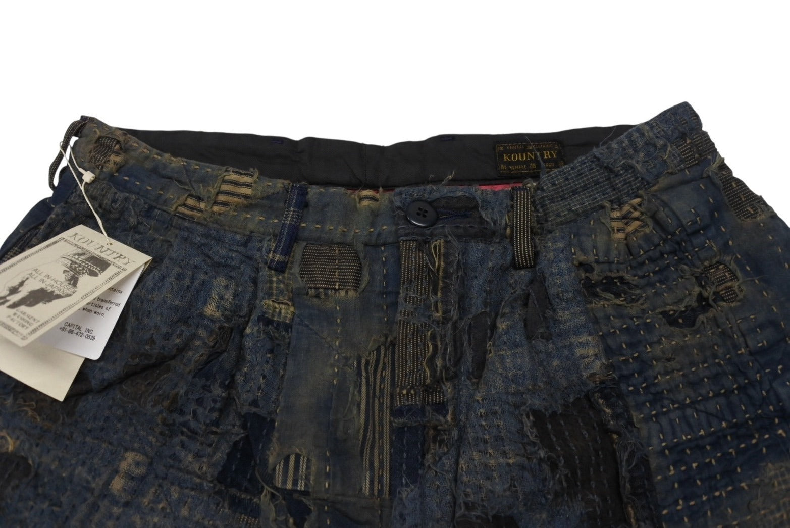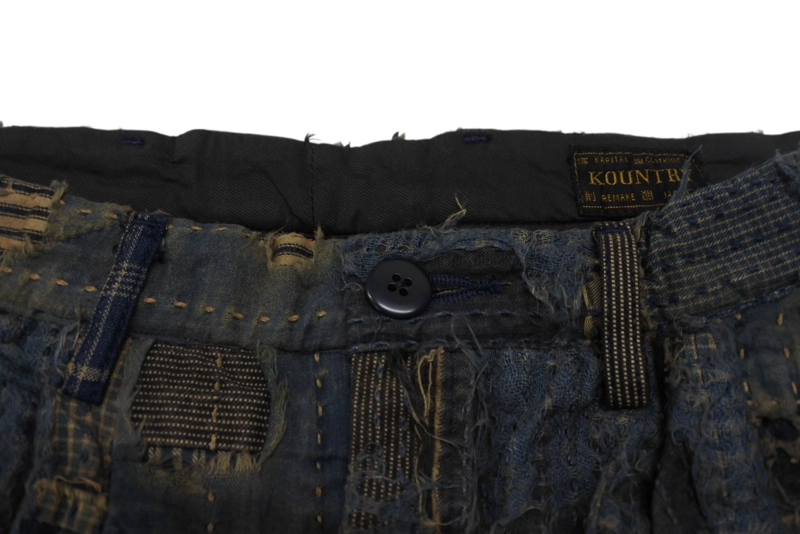 新品未使用 KAPITAL キャピタル BORO IVY ボロ アイビー ショートパンツ ショーツ K2505SP222 サイズL 刺し子 襤褸 ネイビー 中古 4b006650