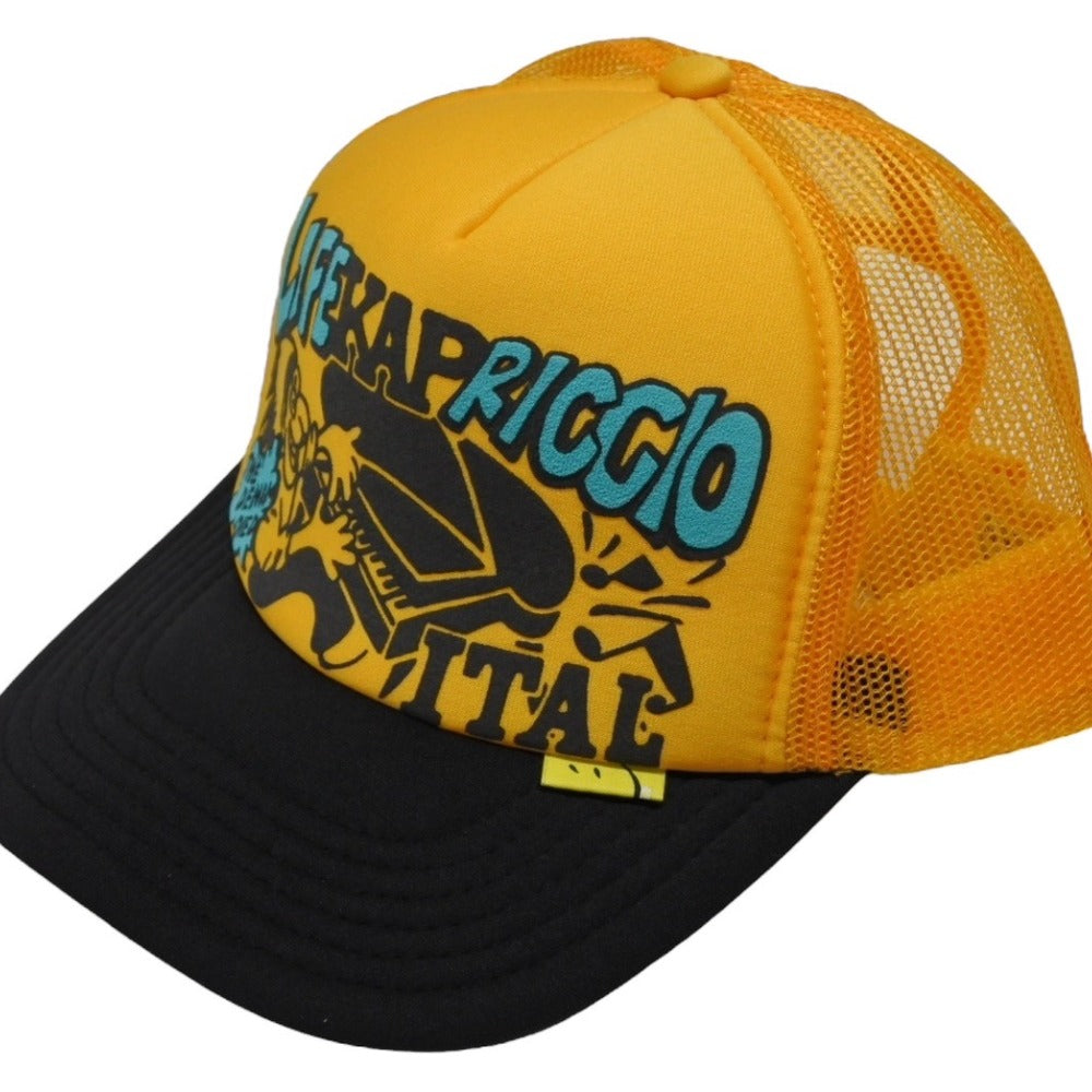 フロントに施されたパフプリントが可愛らしいメッシュ トラッカーキャップです。