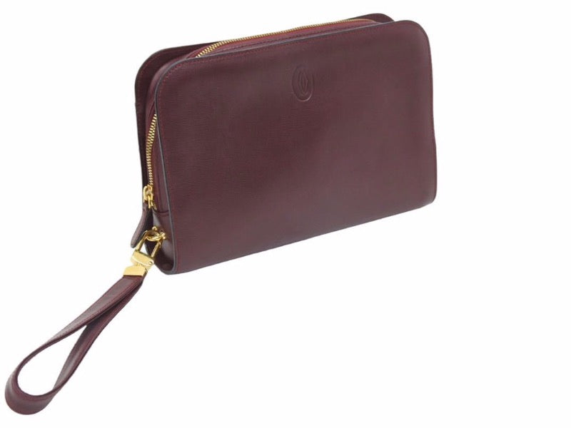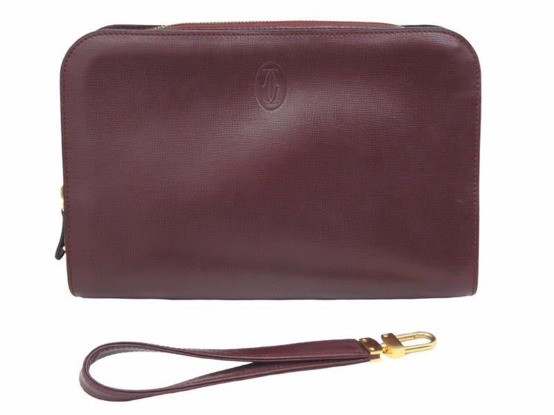 CARTIER カルティエ マストライン クラッチバッグ セカンドバッグ ストラップ付き ボルドー ゴールド金具 41024