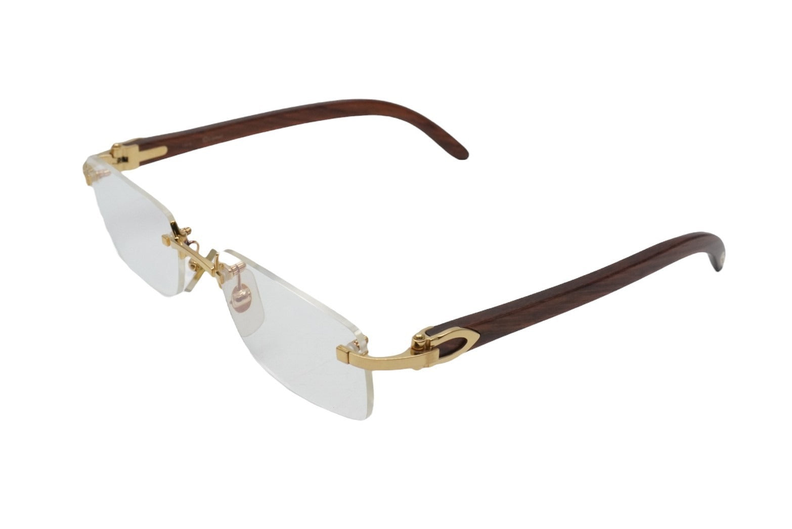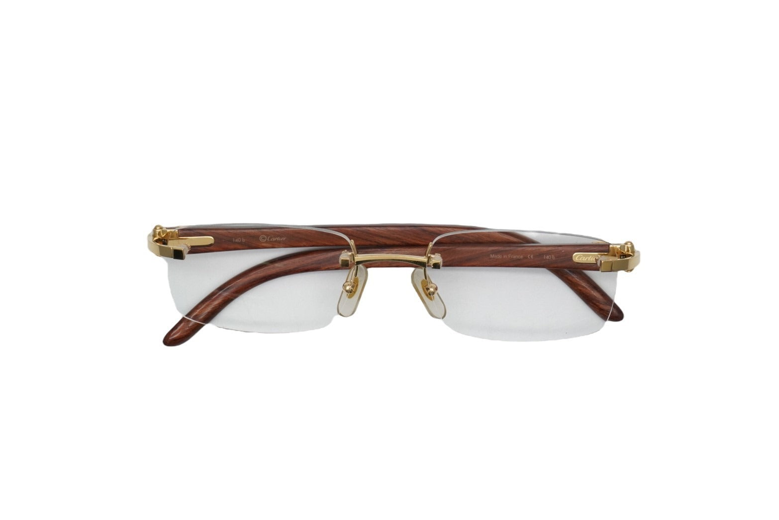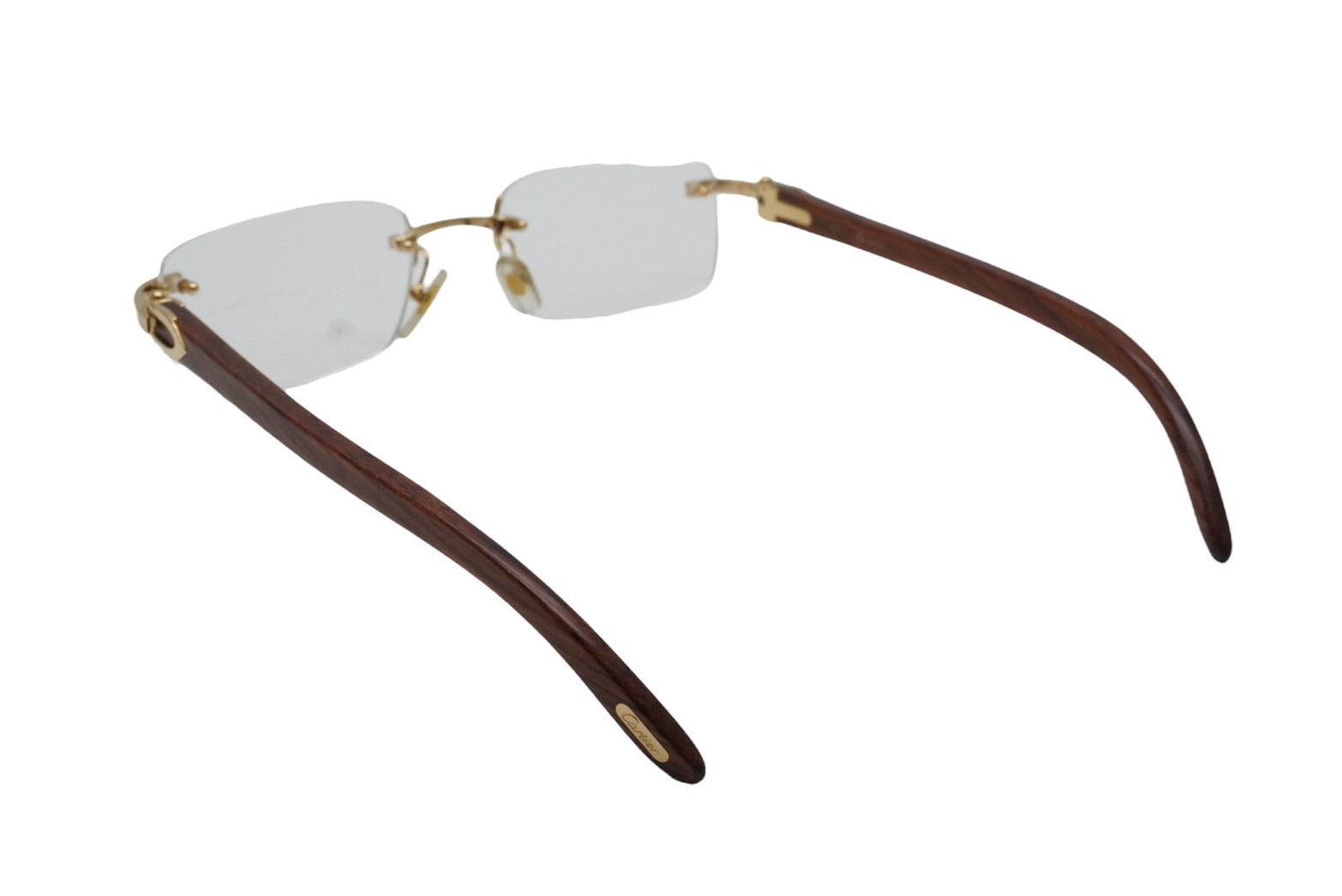 極美品 Cartier カルティエ レクタングル リムレス メガネ ウッドテンプル 度なし 3536104 ブラウン ゴールド □19 中古 52141