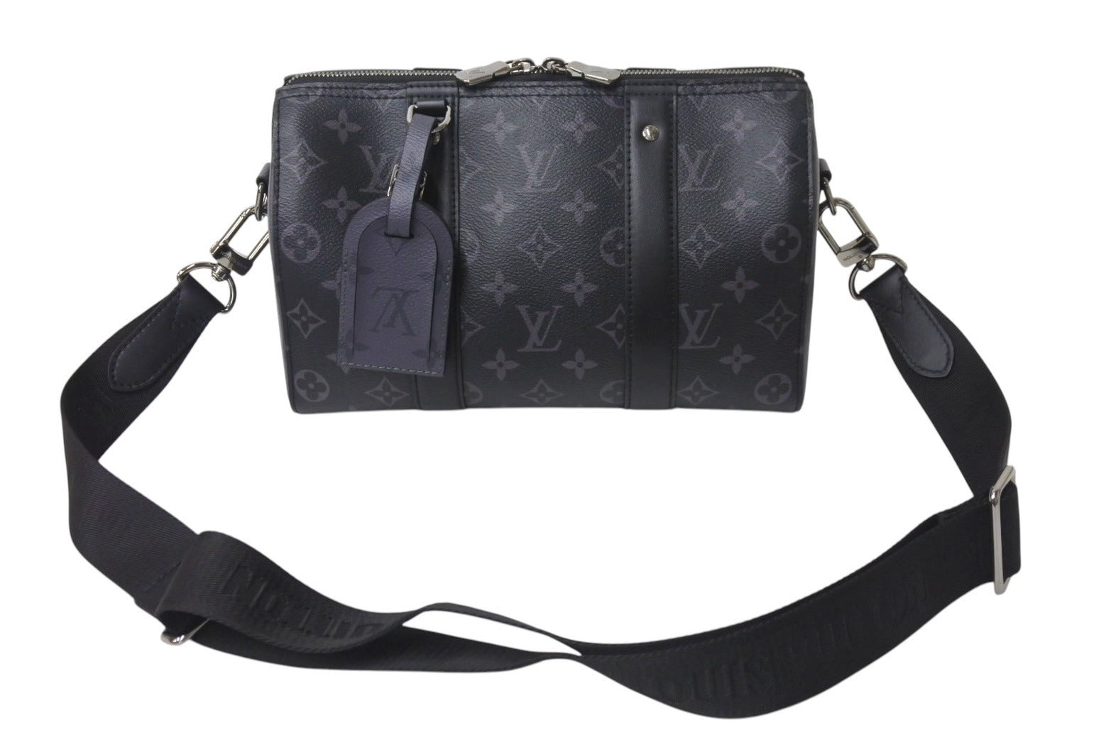 説明ルイ ヴィトンのクラシカルな旅行鞄「キーポル」をモノグラム・エクリプス キャンバスでミニチュアサイズに仕立てた、スタイリッシュかつ実用的な「シティ・キーポル」。