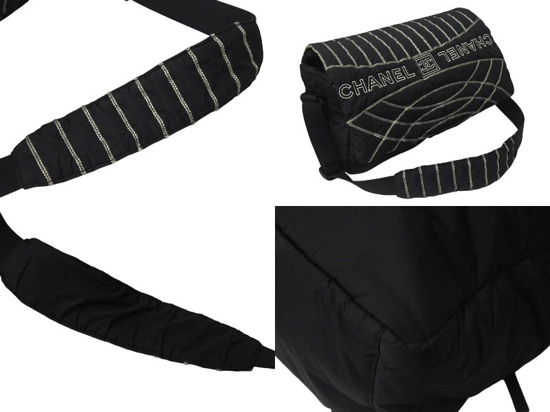 CHANEL シャネル スポーツライン ショルダーバッグ A32807 10番台 ココマーク 刺繍 ナイロン ブラック 美品 中古 4b001460