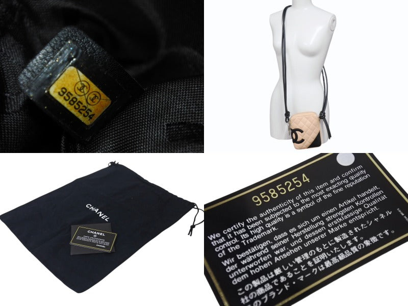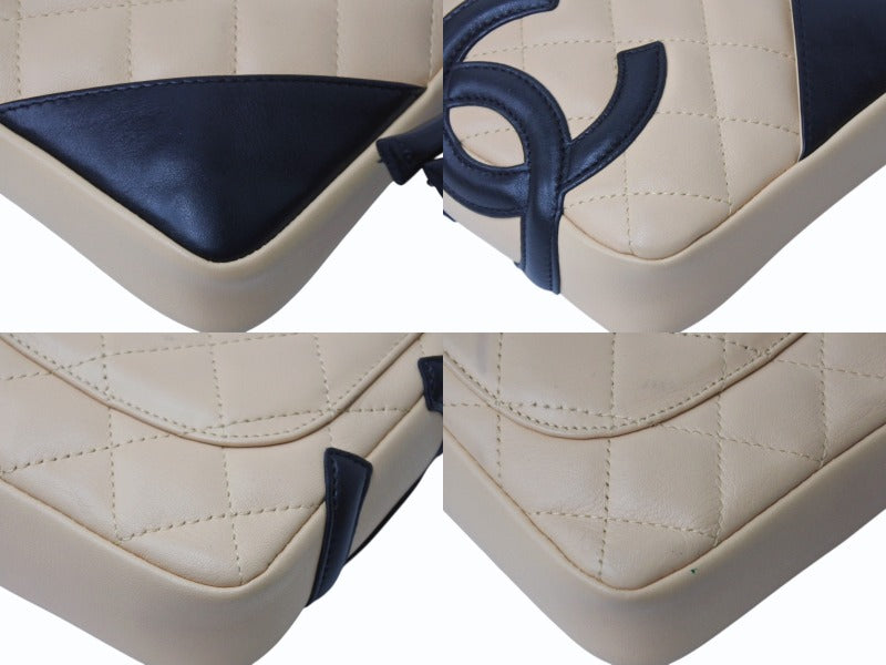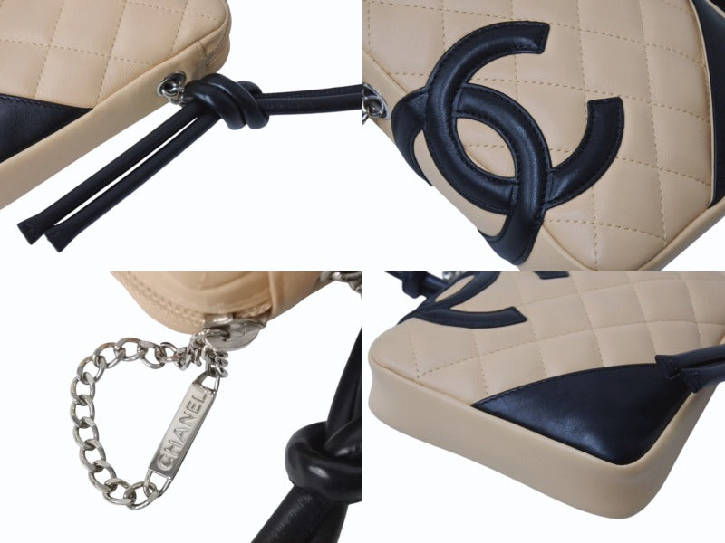 CHANEL シャネル カンボンライン ショルダーバッグ 9番台 ラムスキン ベージュ ブラック シルバー金具 美品 中古 4b001724