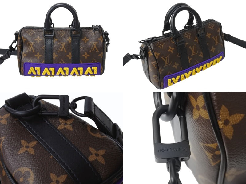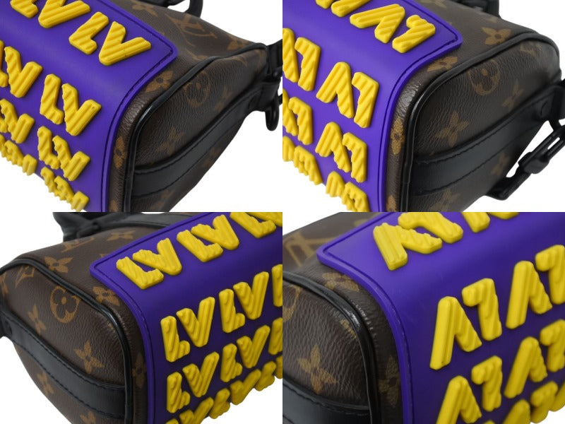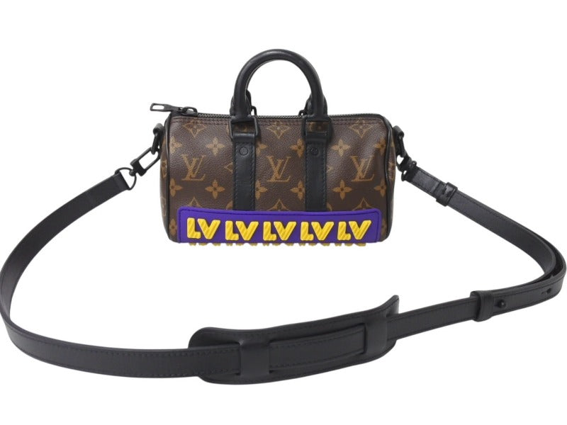 モノグラム キャンバスで仕立て、下部にラバーのアップリケをあしらいました。パープルとイエローで表現したメゾンのイニシャルが目を引きます。ショルダーストラップが付いており快適に持ち運びすることができます。