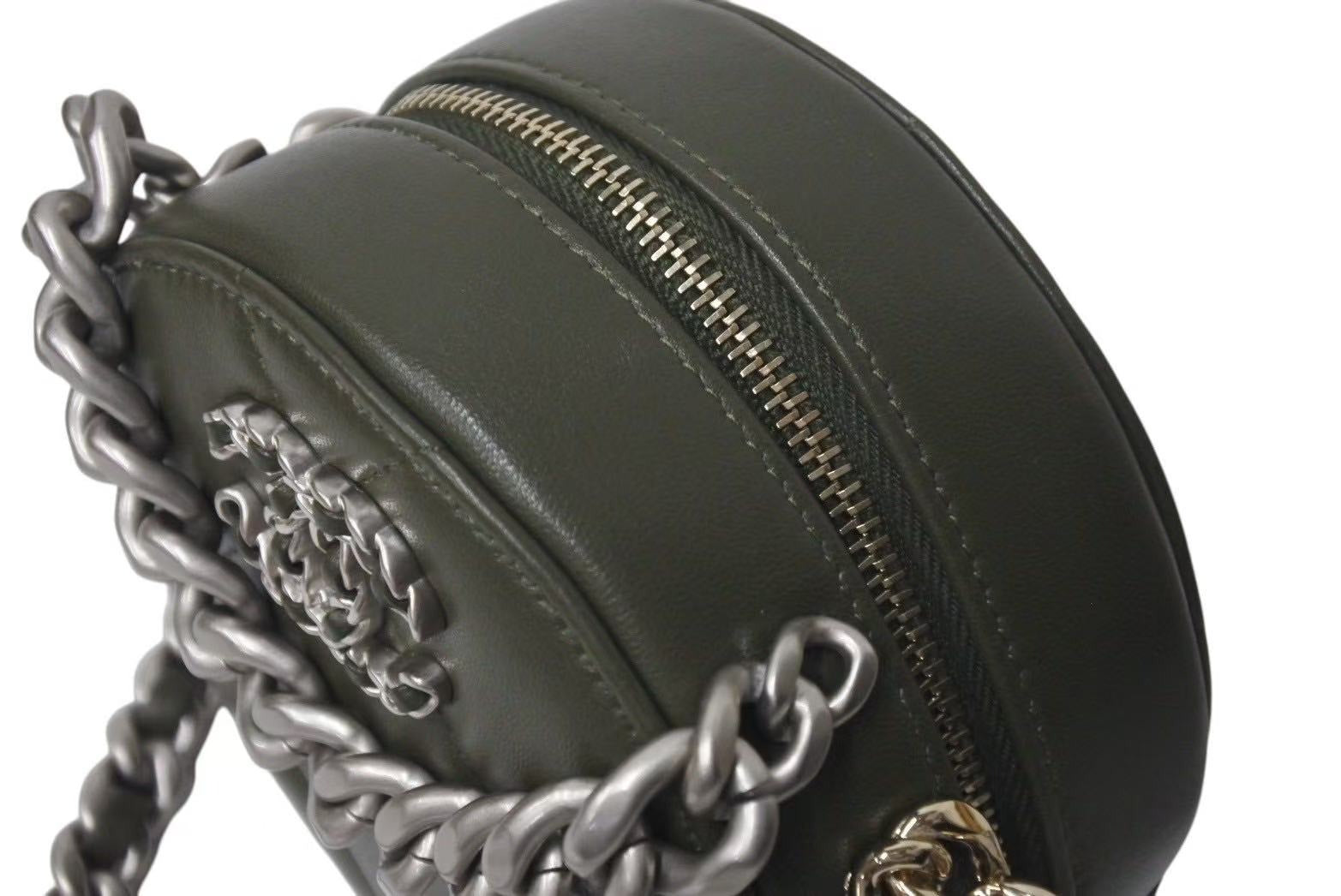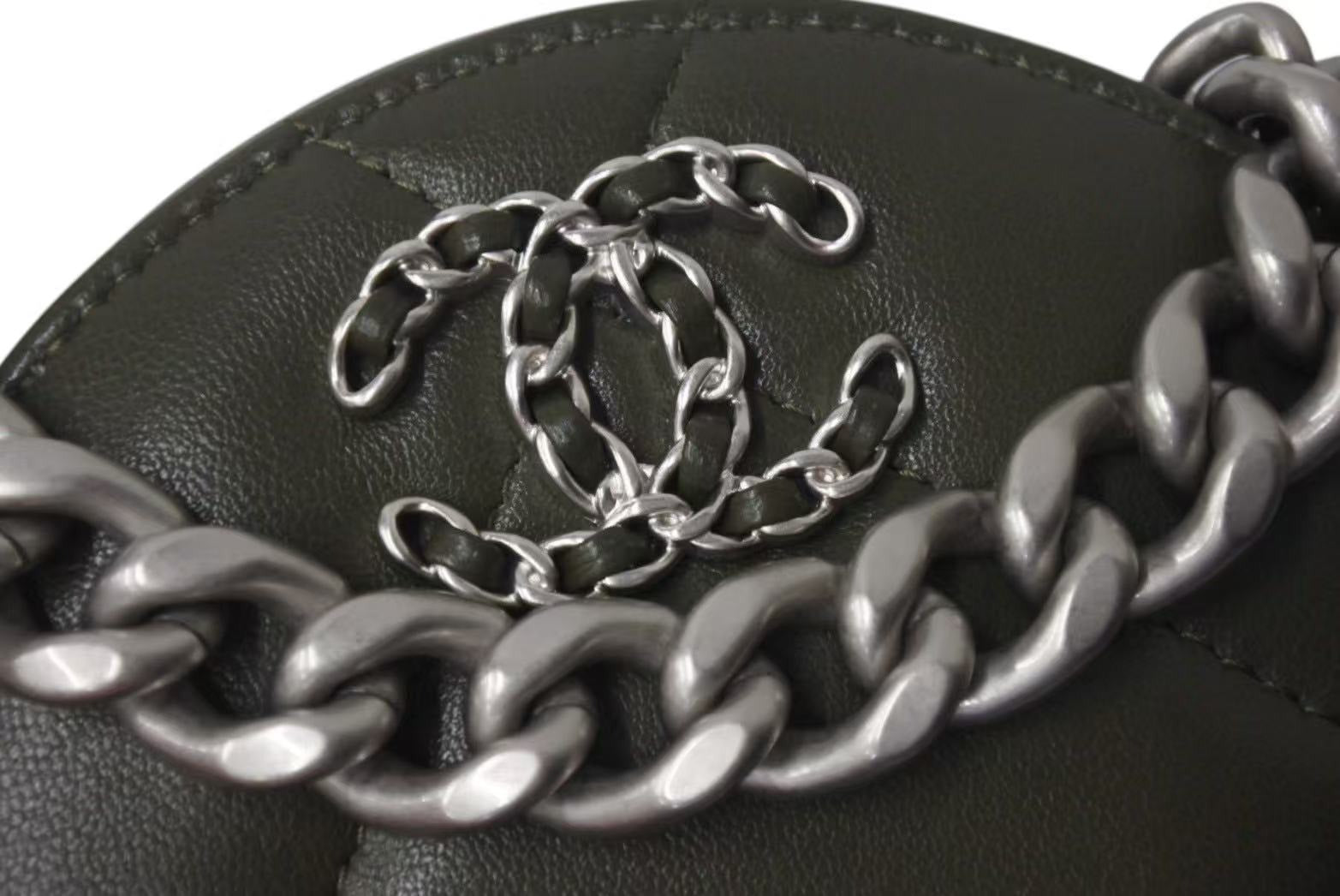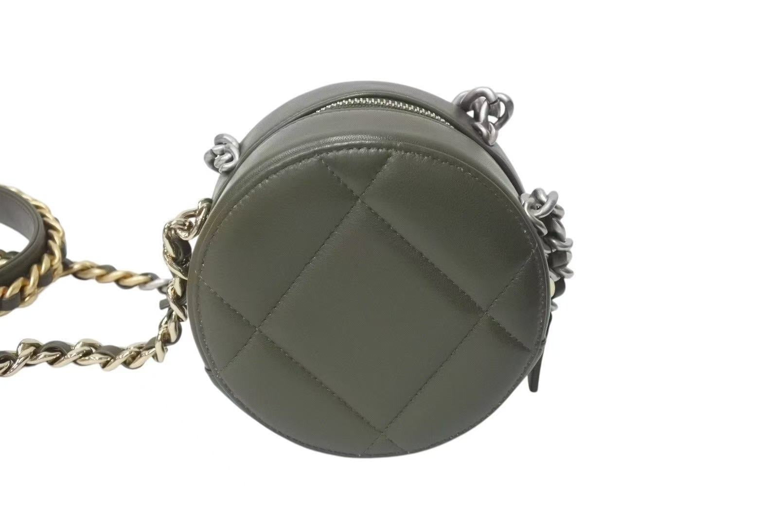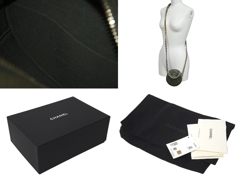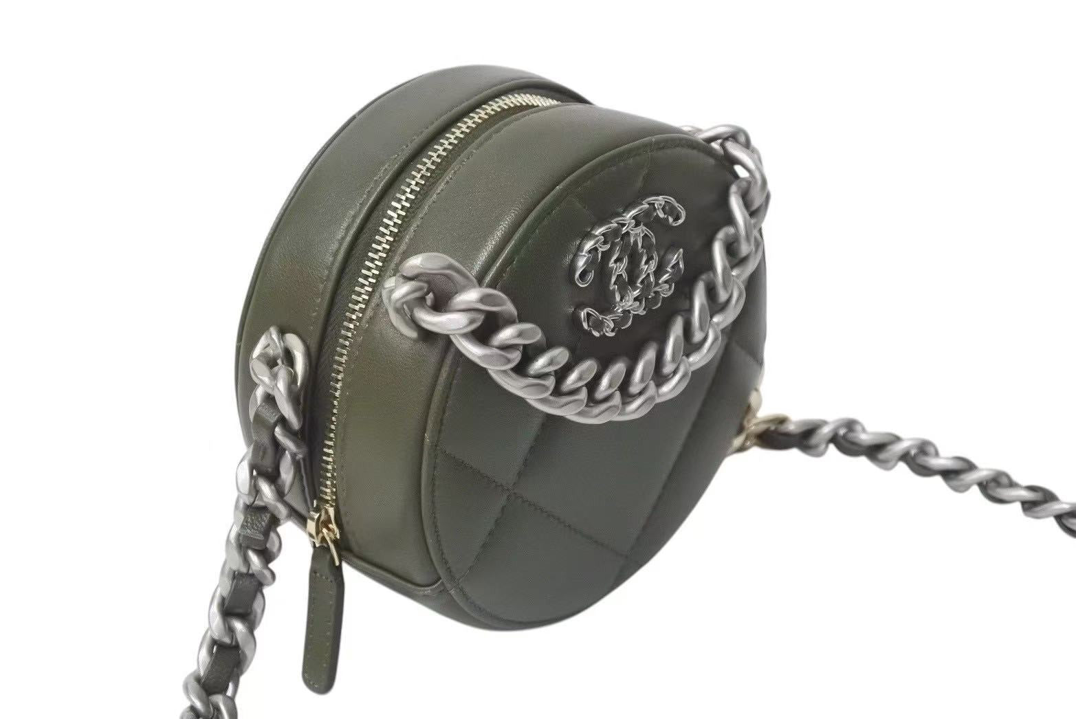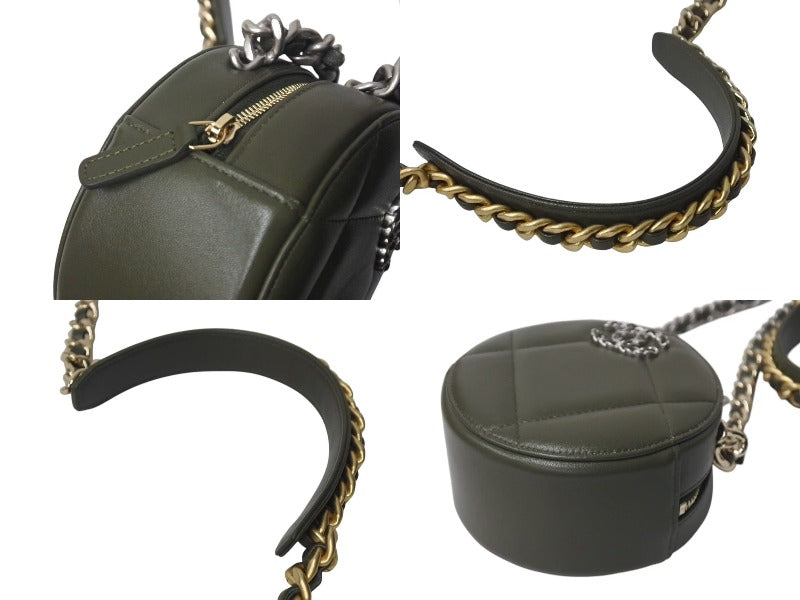 新品未使用 CHANEL シャネル ショルダーバッグ チェーン 19 ココマーク ラムスキン ラウンド型 カーキ ゴールド金具 中古 4c073384