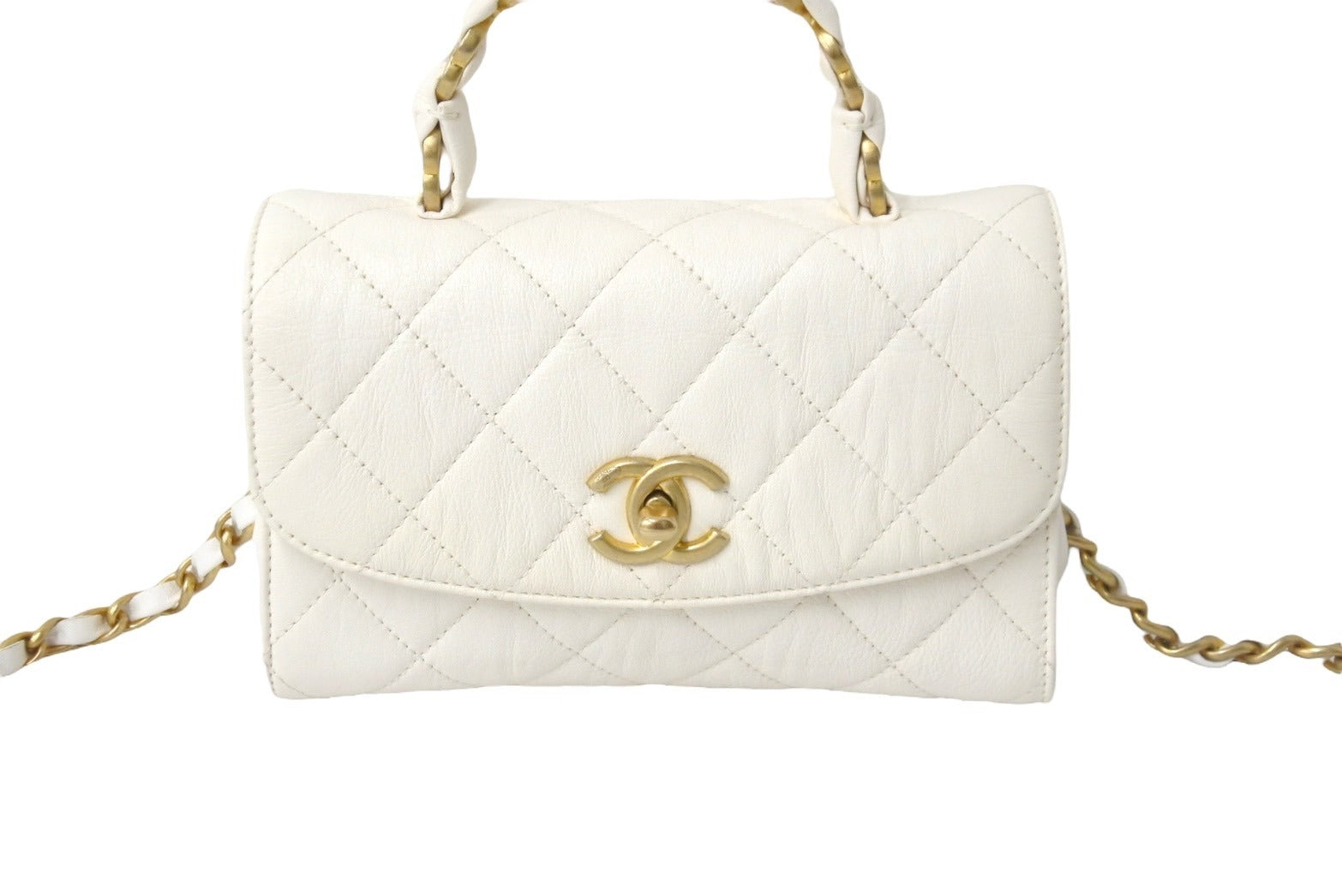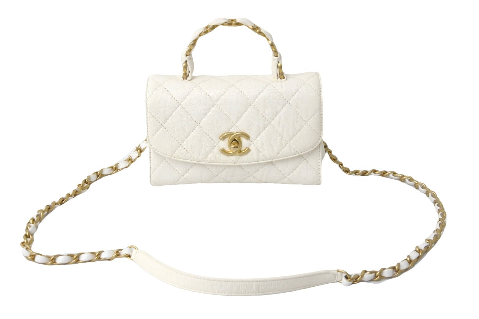 ホワイトカラーにゴールドチェーンのデザインで品と高級感のある可愛らしいバッグです。