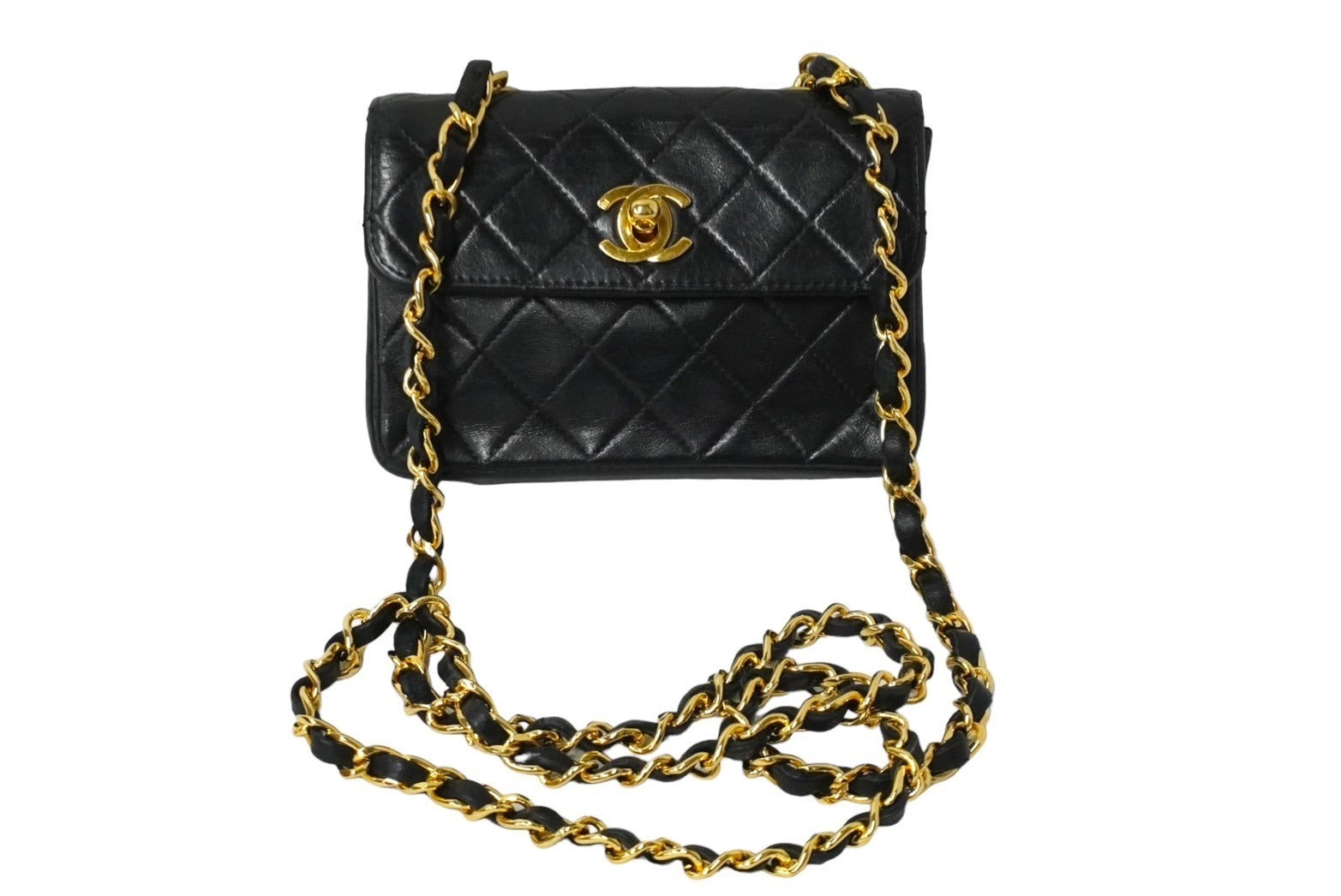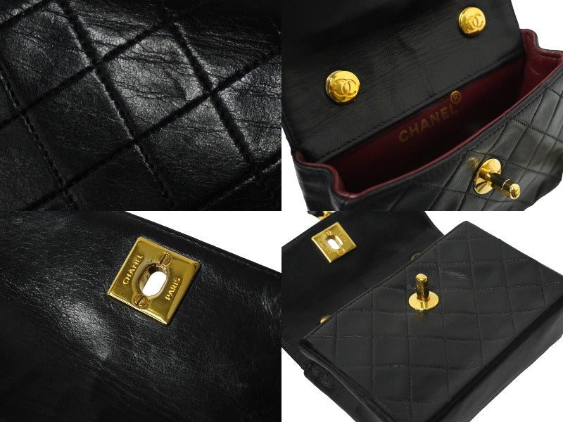 CHANEL シャネル ミニマトラッセ14 ハーフフラップ チェーンショルダーバッグ 1番台 ブラック ゴールド金具 美品 中古 61227