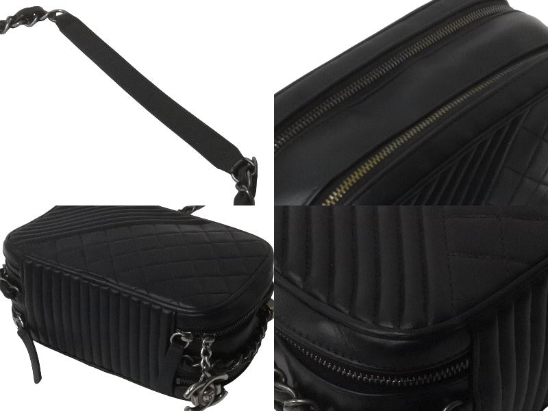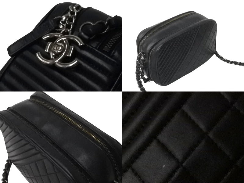 CHANEL シャネル ココボーイ チェーンショルダーバッグ ショルダーバッグ 20番台 ラムスキン ブラック シルバー 美品 中古 62665