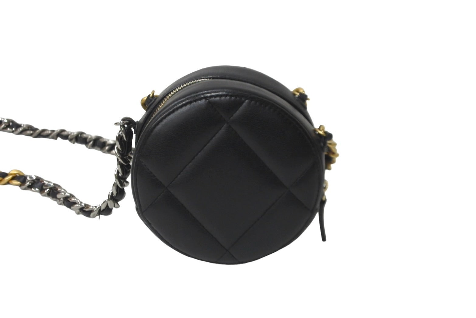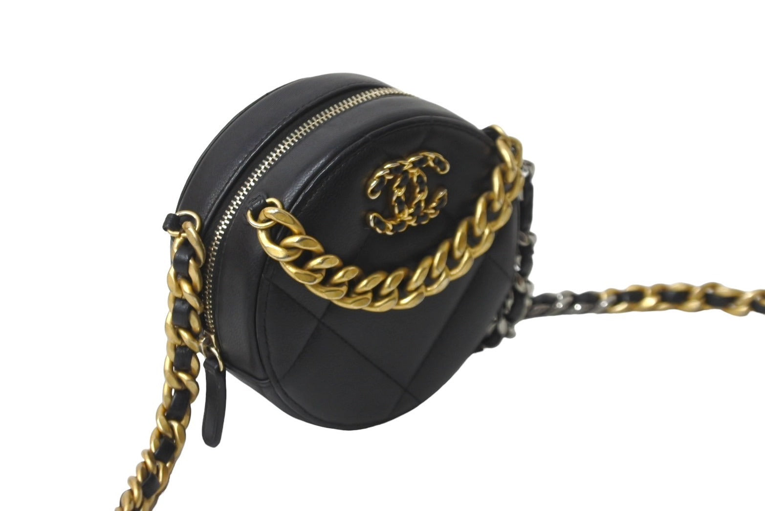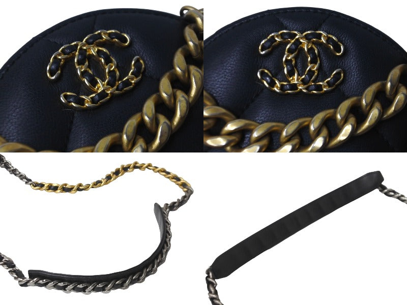 極美品 CHANEL シャネル ショルダーバッグ チェーン 19 ココマーク ラムスキン ラウンド型 ブラック ゴールド金具 中古 63004