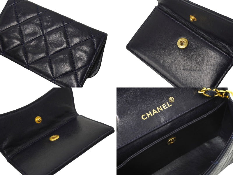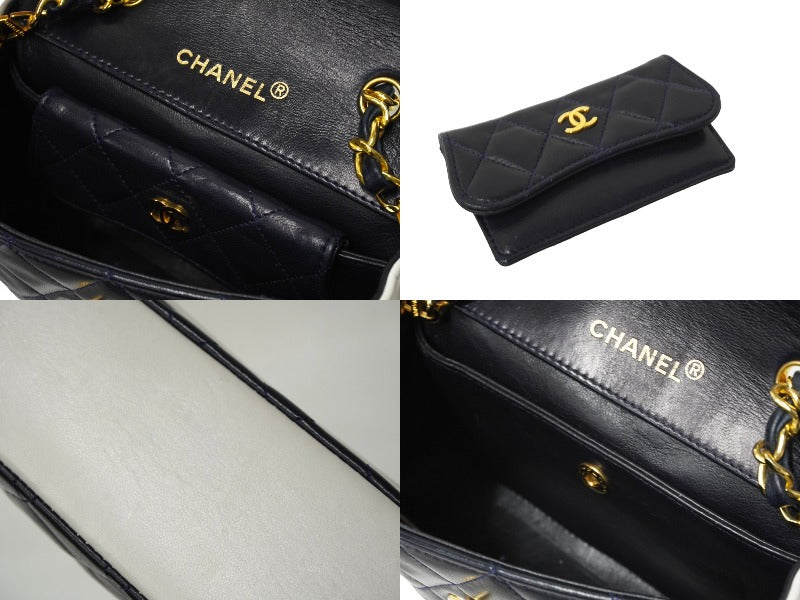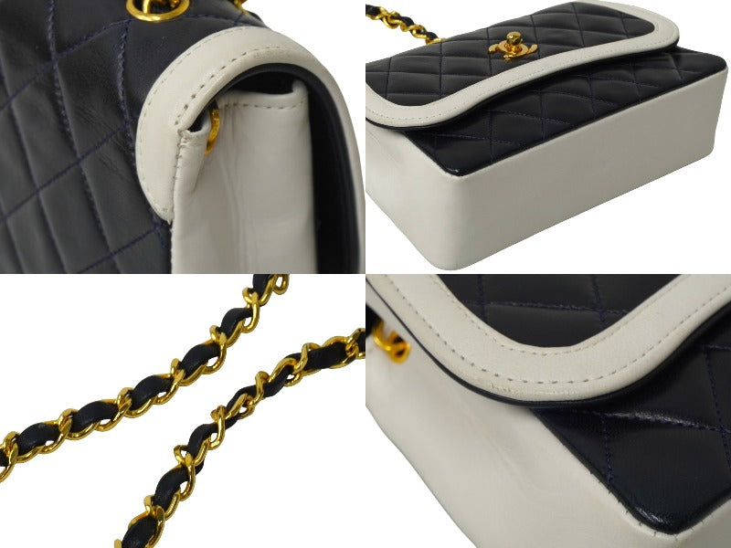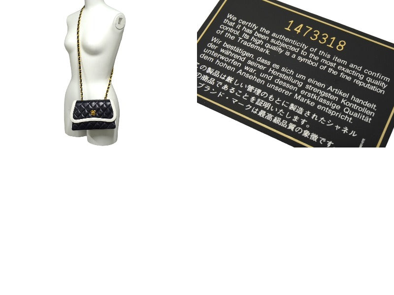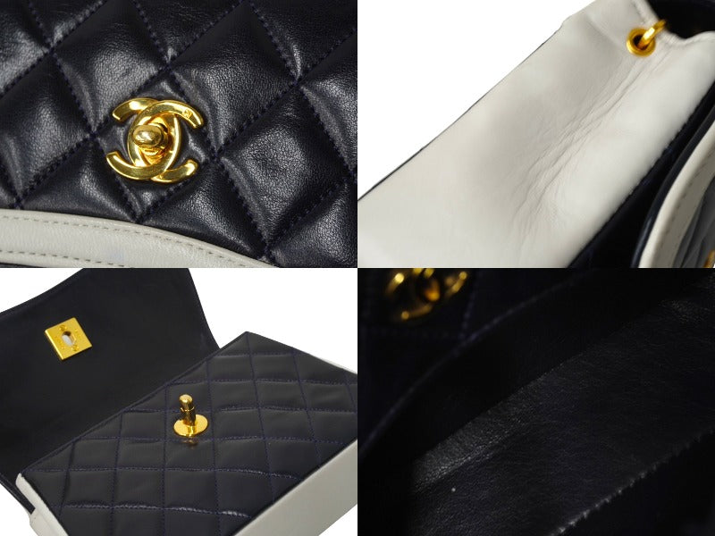 CHANEL シャネル ミニマトラッセ ショルダーバッグ ココマーク 14番台 バイカラー ラムスキン ホワイト ネイビー 美品 中古 63971